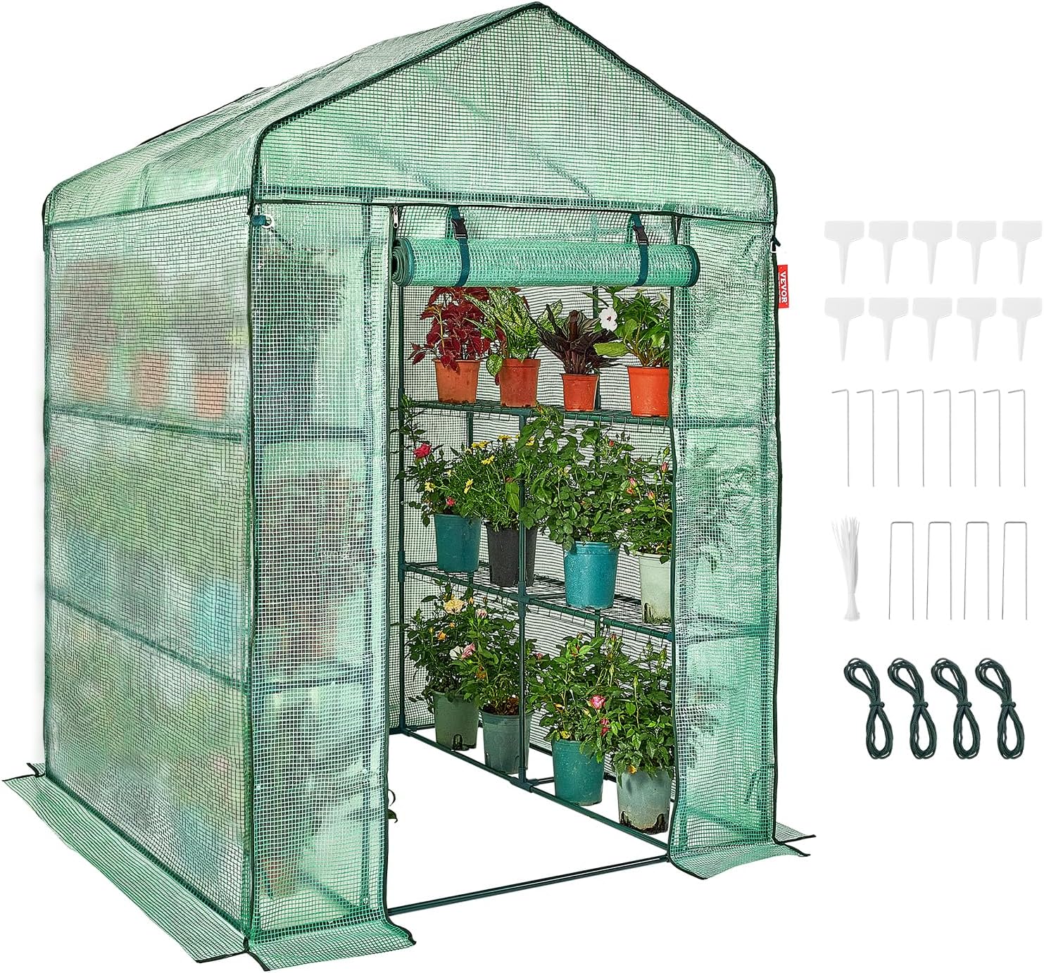 - Designed with You in Mind: Our greenhouse with shelves features a roll-up zipper door for easy access and allows for optimal air circulation. Your plants will thrive like never before in this greenhouse with shelves!