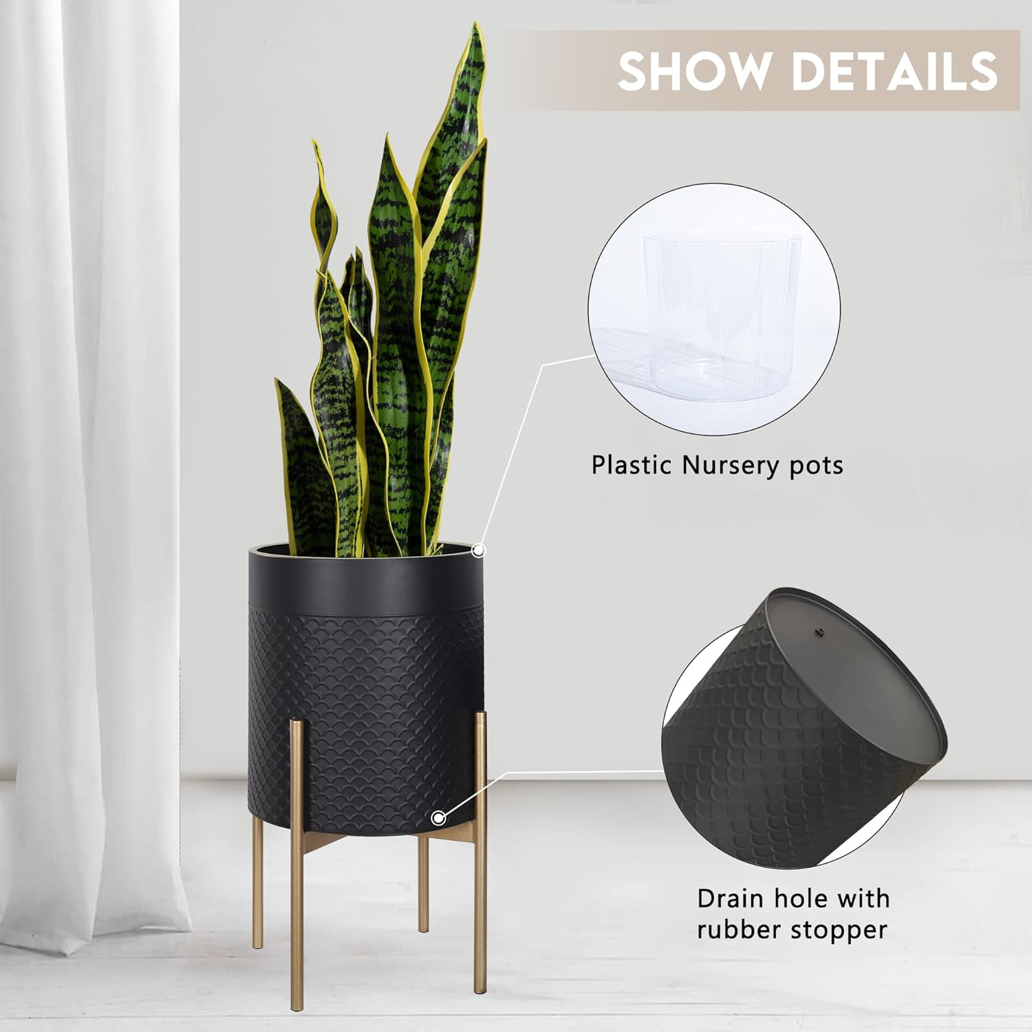 Oakrain Planters for Indoor Plants, Set of 2 Mid Century Modern Planter with Stand, Decorative Metal Planter Pots for Living Room, Office, Garden or Balcony, Black, 10"&12"