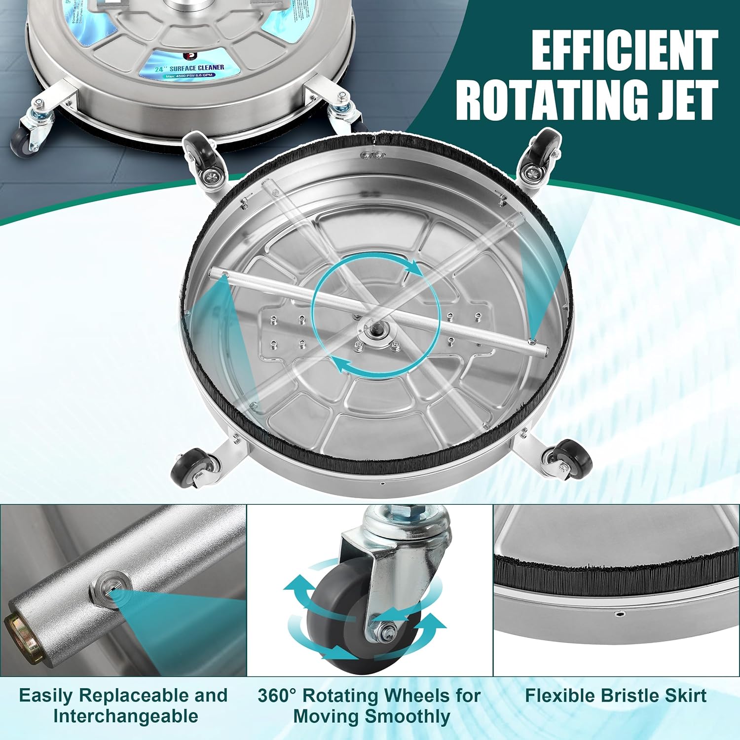 - STAINLESS STEEL CONSTRUCTION: The surface cleaner for pressure washer is made with corrosion-resistant stainless steel, which ensures durability and longevity. Whether you're cleaning your driveway at home or a large commercial space, this surface cleaner will stand up to the task.