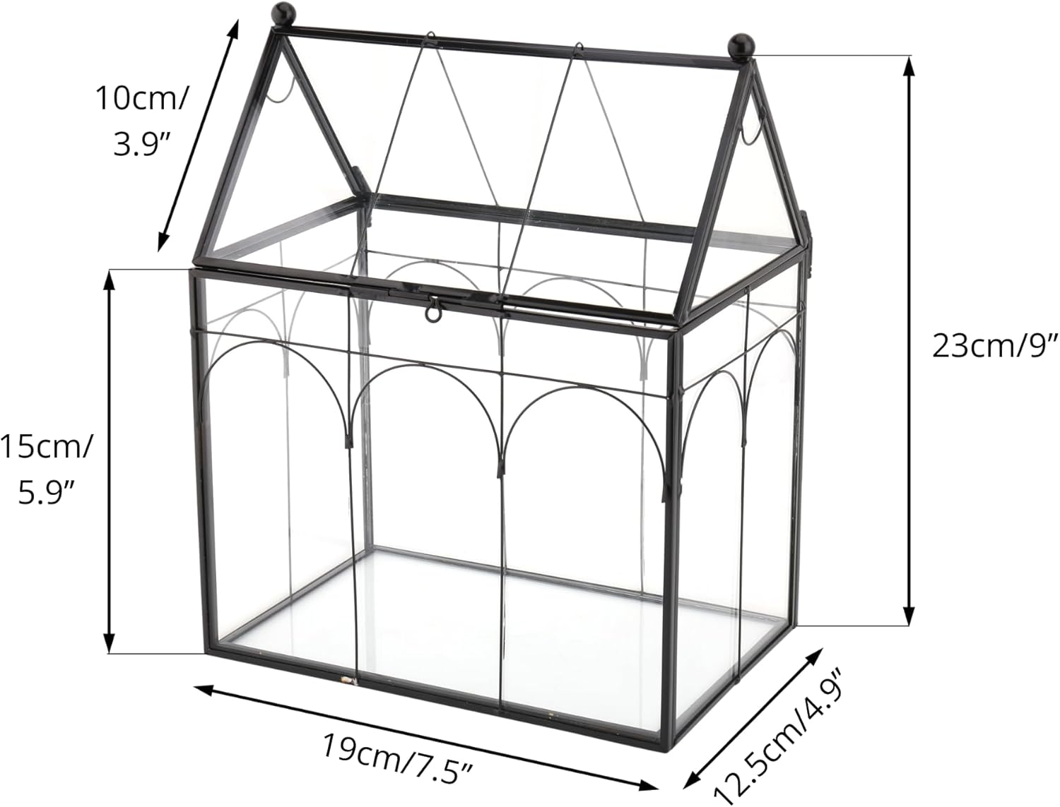 - This large plant terrarium is made of reinforced glass, super sturdy; Black glass little greenhouse with top lift off easy to take plant in/out