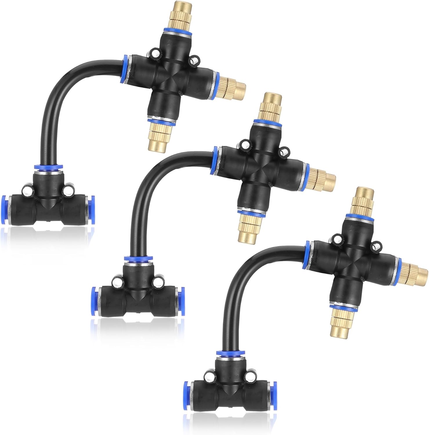 - 【Package】: Mornajina Slip-Lock misting nozzles kit comes with 3Packs 3 Way Brass Misting Nozzles Tee with 5inch Built in Hose, and can be bent and fixed at 360 degrees. Help cooling the air and widely suitable for patios, decks, porches, pool and other area.