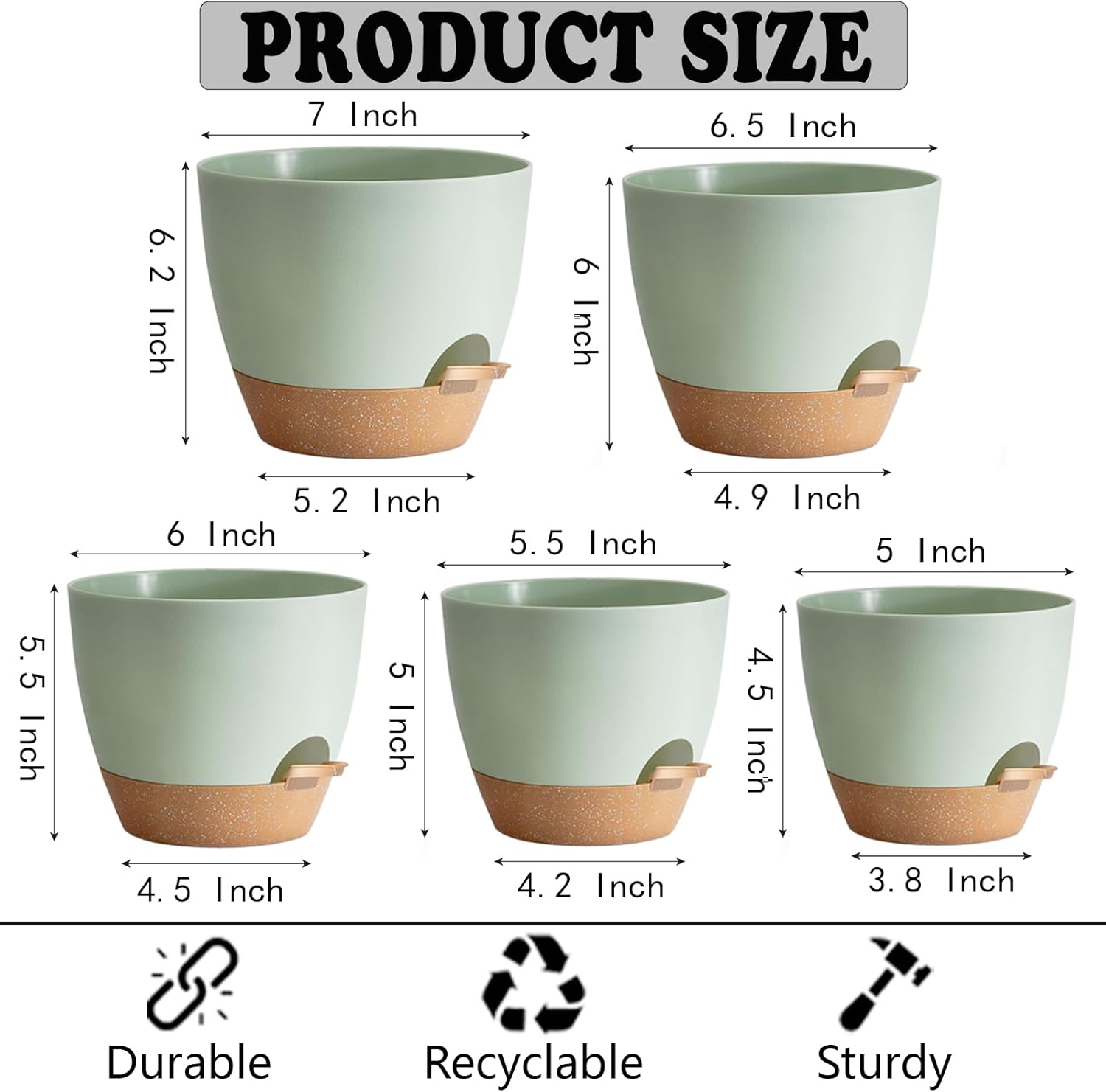 - Package content: 5 pcs * Planters set. Crafted with precision and combines with five different sizes. Opening diameters of 7/6.5/6/5.5/5 inches. Please note that the planters are sold separately, and plants are not included.