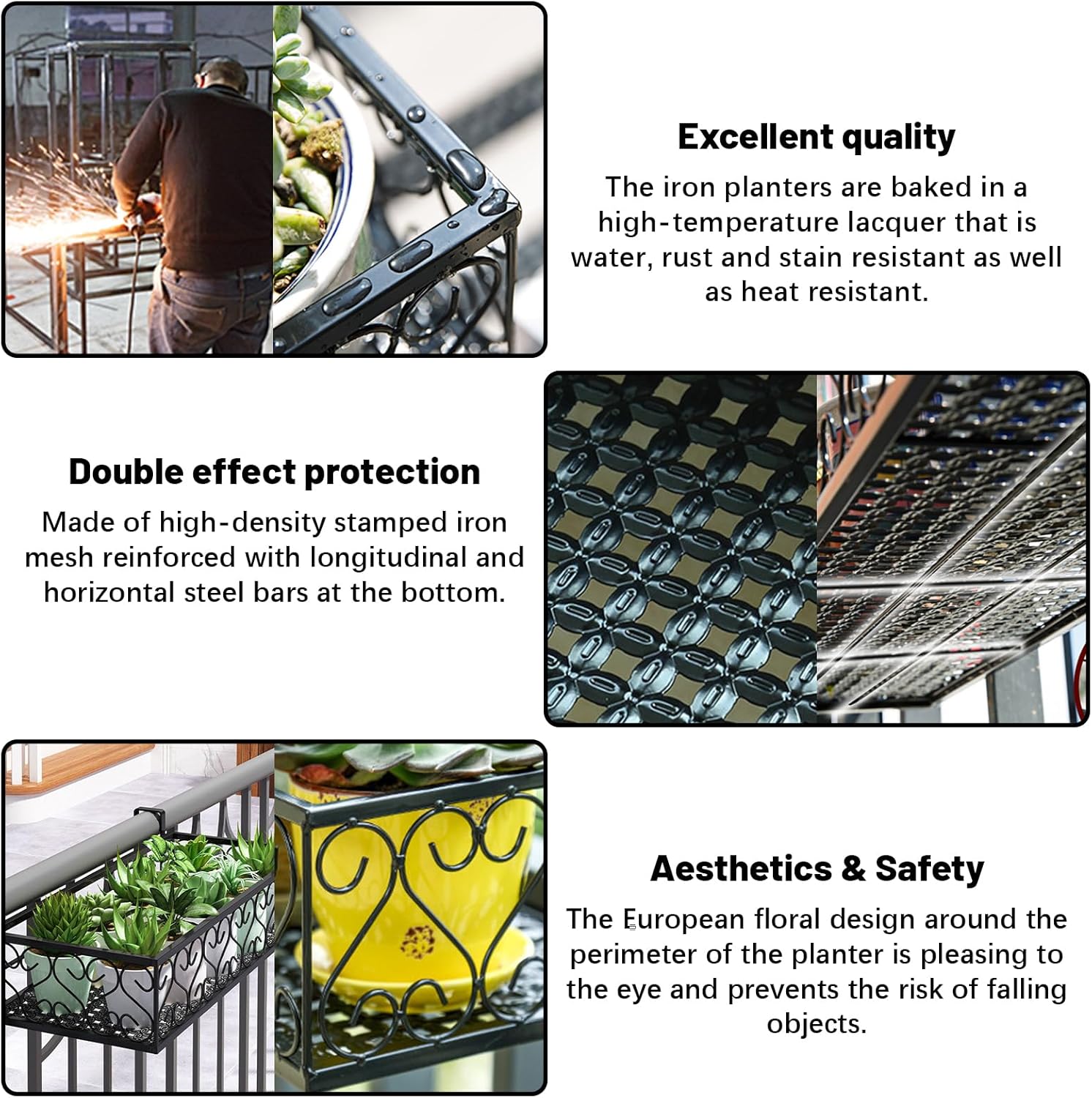 - Large Capacity: The plant holder for railing is designed with an artistic square shape, and each basket measures 23.6*7.8*4.7in(L x W x H), providing large space for putting succulents and small potted plants. And it can not only let your plants enjoy enough sunlight for better growth while making your balcony more charming