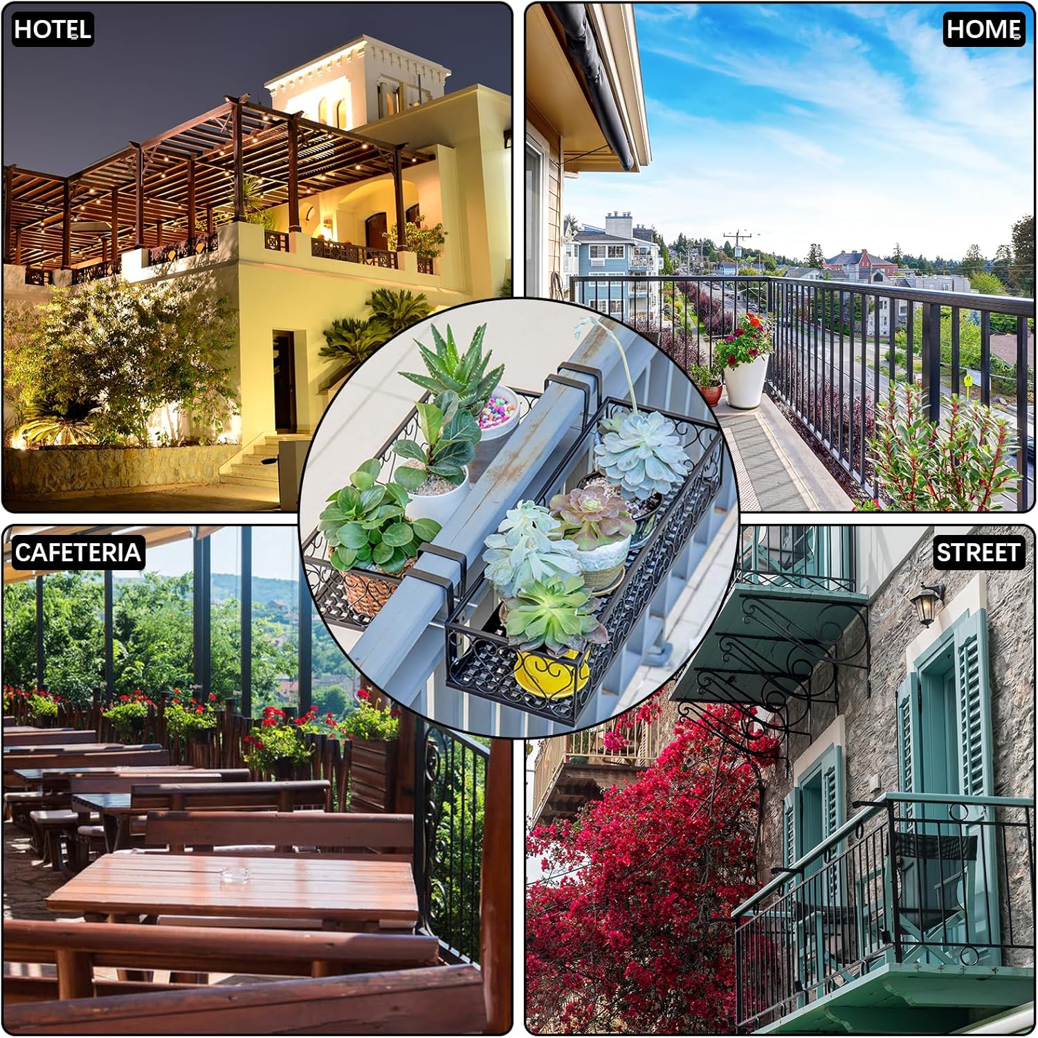 - More Occasions: This hanging railing planter not only can create a great decorations for patio, balcony, garden, porch, fence, deck, railing, flower shop, coffee shop, outside window wall and even for wedding venue,but store shower gel in the toilet or soy sauce bottles in the kitchen etc.