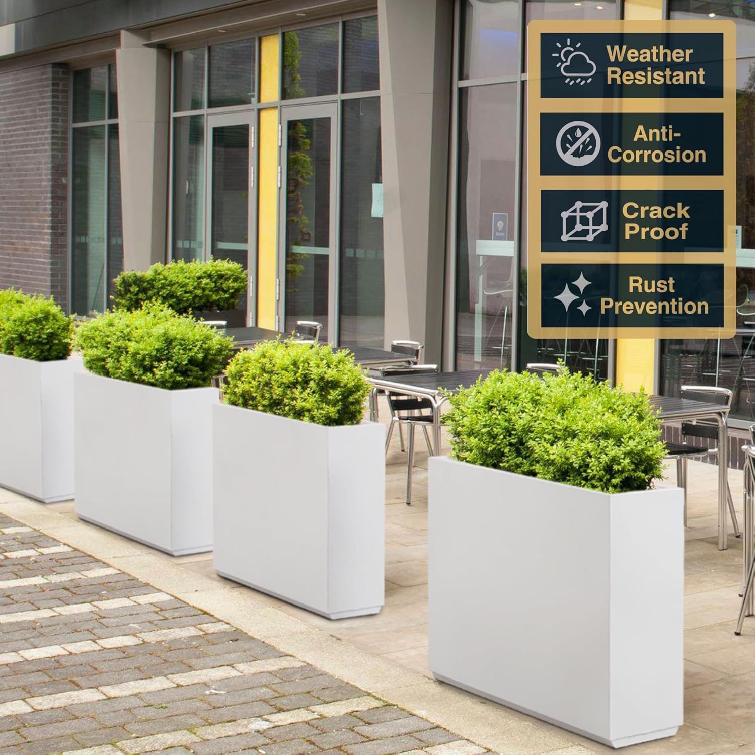 - 【Versatile Divider Design】Elevate your garden or outdoor space with this sleek, long rectangular planter. Its robust build not only enhances garden aesthetics but also serves as an elegant privacy divider for decks, patios, or entrances.