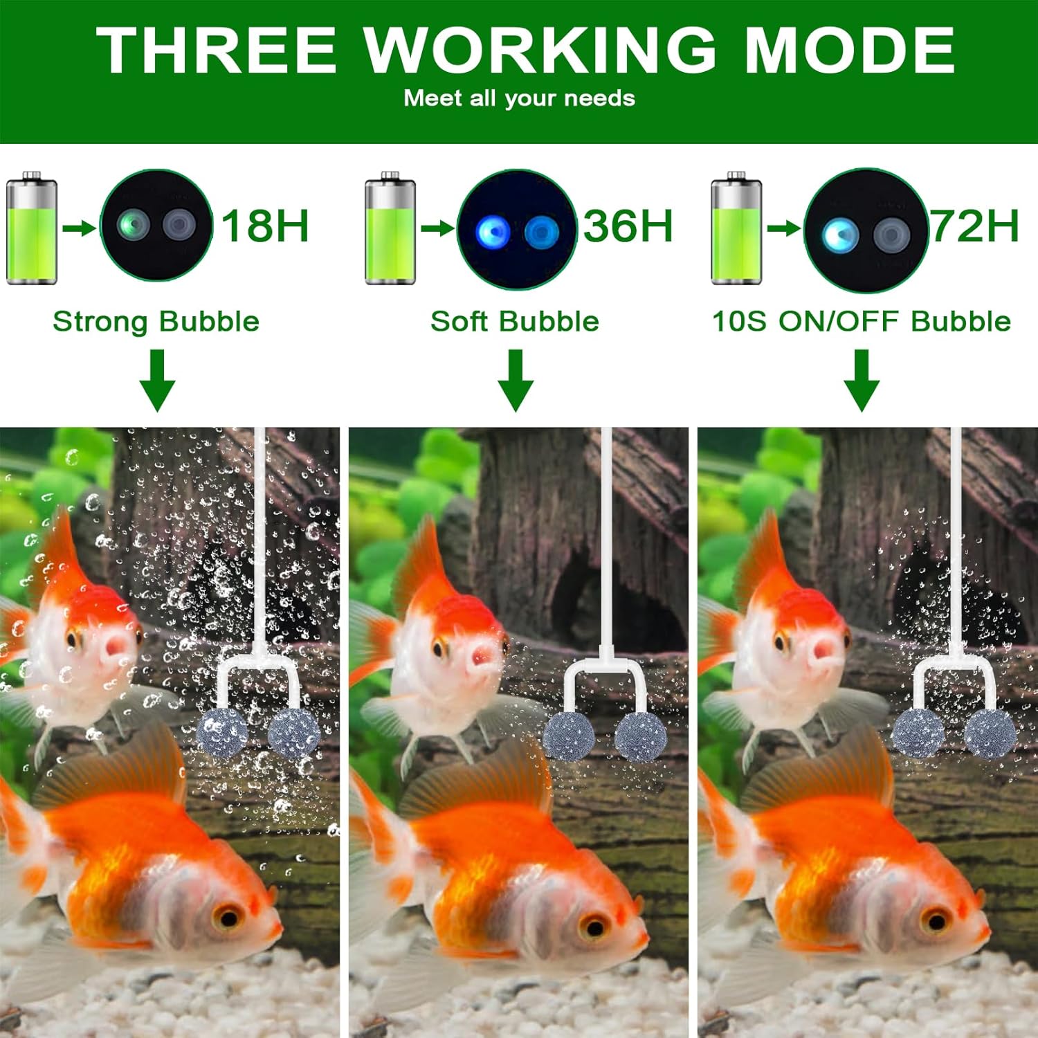 - 【Pond Aerator with Battery】Built-in 2200mAh battery, when fully charged, this outdoor solar pond aerator can provide up for 72 hours of working time and continue to oxygenate your fish tank at night and in rainy/cloudy days. Perfect for aquariums, fish transportation, wild fishing and seafood storage and other places that need supplemental oxygen.