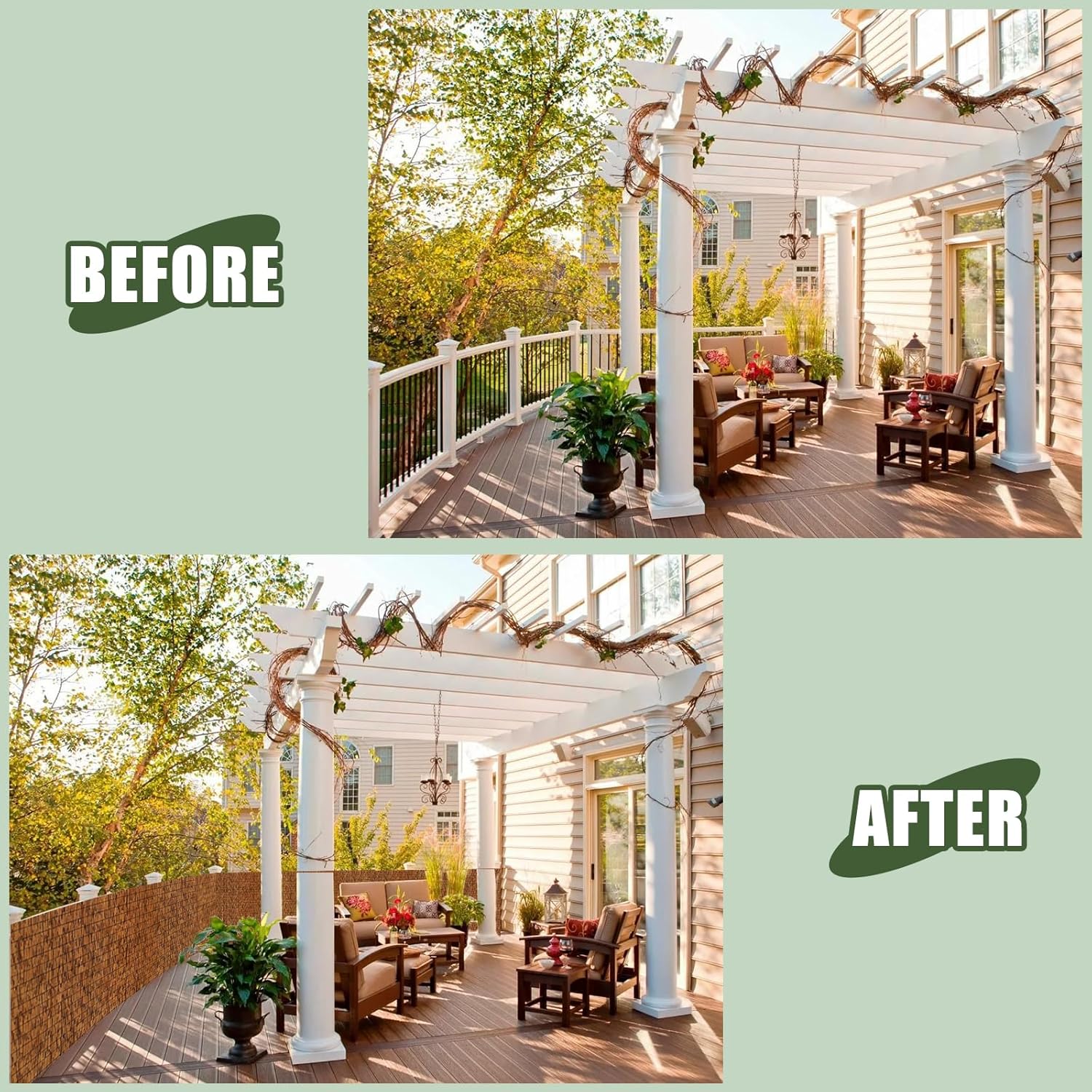 - 【More Shade and Privacy】Reed fencing is also ideal for creating privacy around pool areas, decking and verandahs, or simply to create a private little corner in your garden where you can relax away from prying eyes