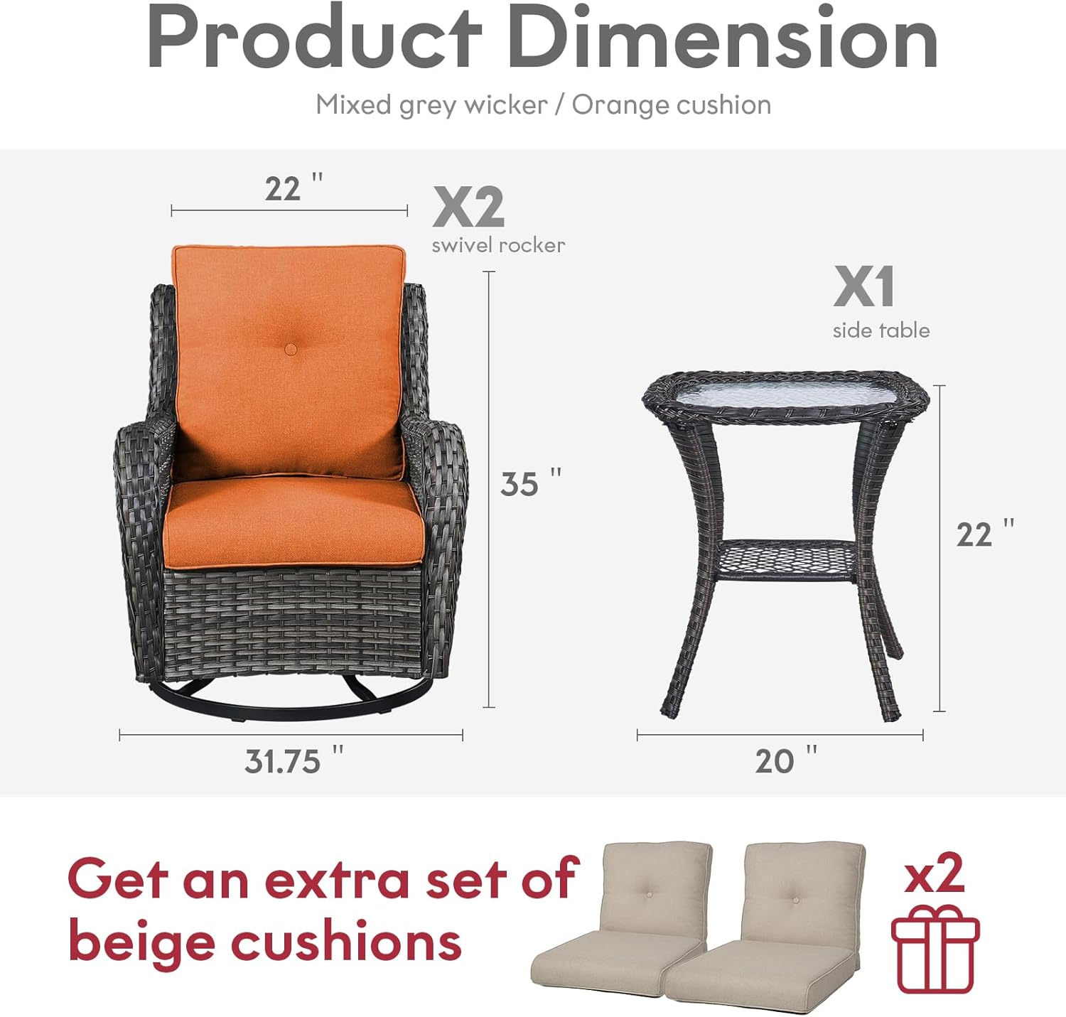 - Color : Mixed Grey Wicker / Orange Cushion