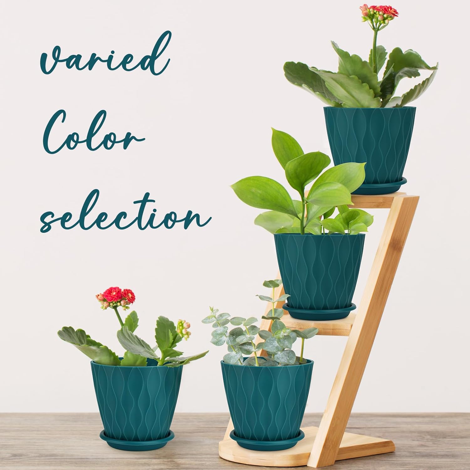 6 inch Plant Pots, 5 Pack Flower Pots Outdoor Indoor, Planters with Drainage Hole and Tray Saucer(Blue