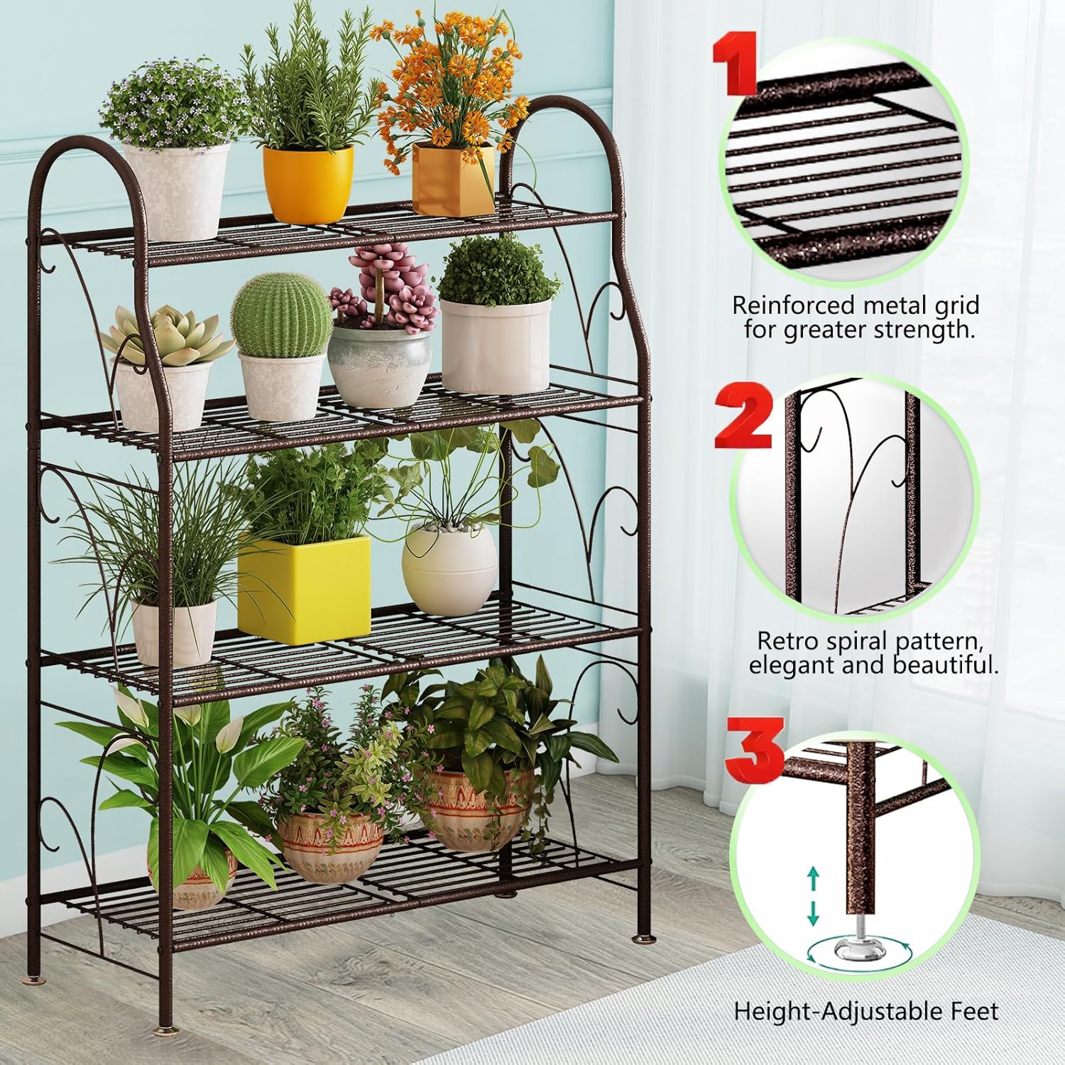 SORCEDAS Plant Stand Indoor Outdoor Plant Shelf 4 Tier Metal Corner Flower Stand Multiple Holder for Patio Garden Balcony Living Room ,Bronze