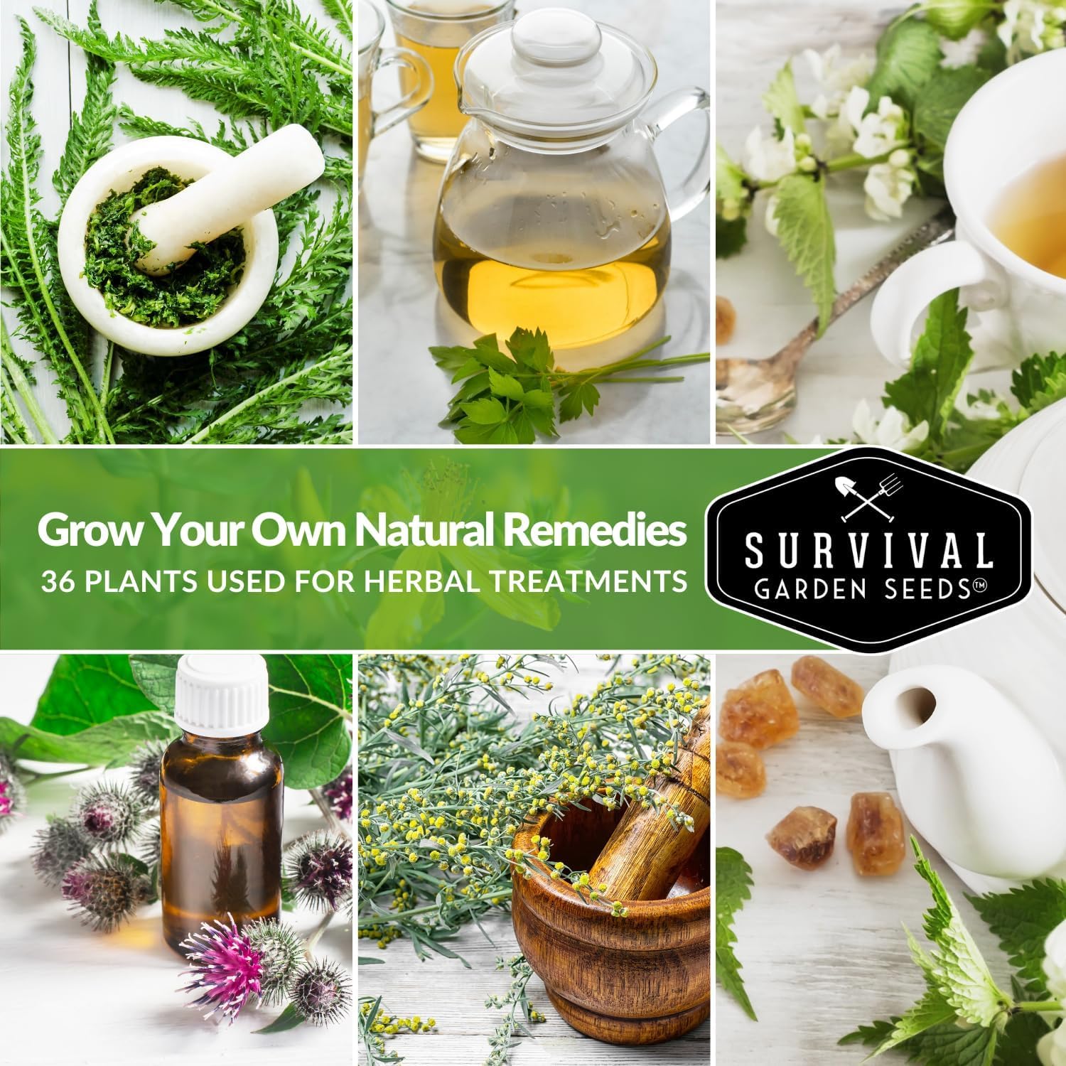- GROW YOUR OWN MEDICINAL HERB GARDEN – 36 heirloom varieties including lavender, calendula, echinacea, peppermint, chamomile, feverfew, and yarrow for teas, tinctures, salves, and natural remedies