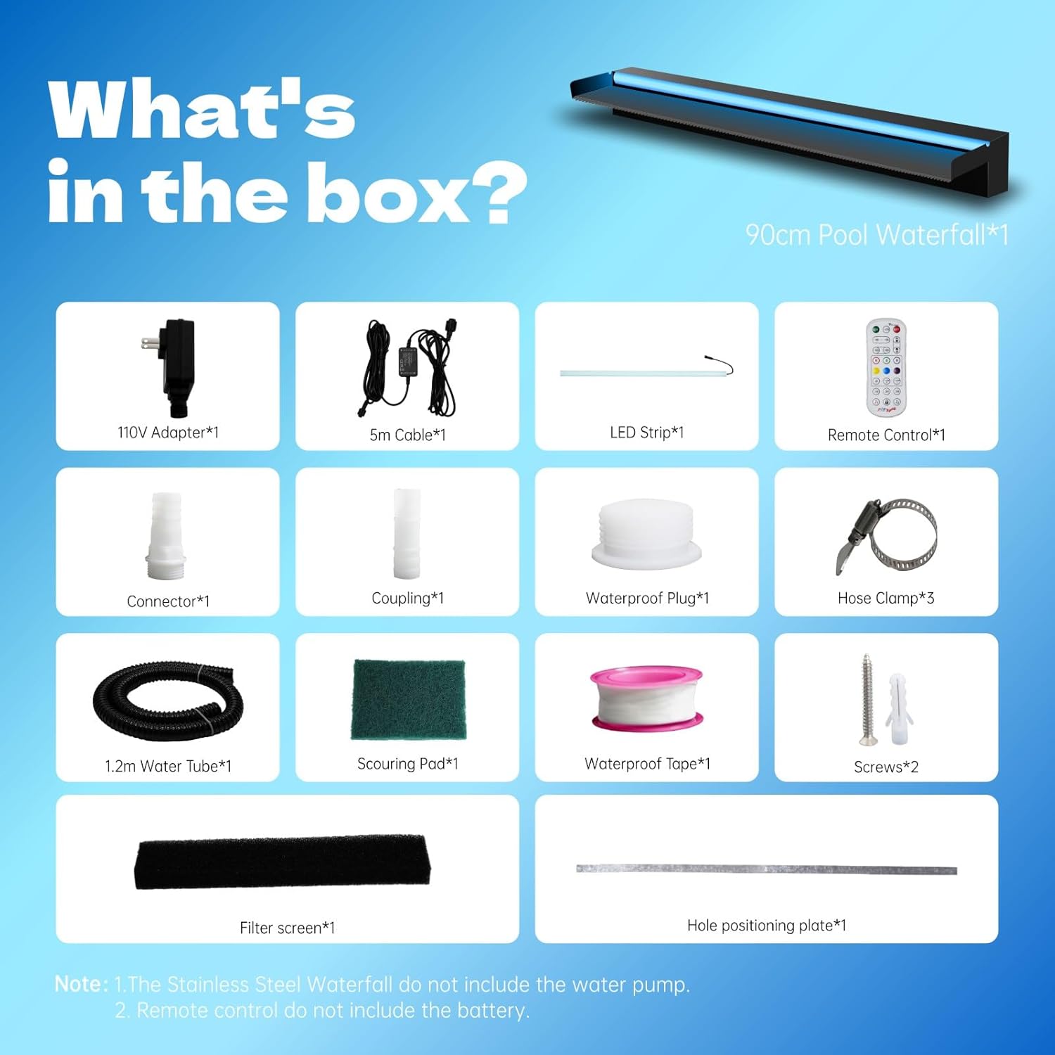 - ⏩Decoration Pool Waterfall⏪ Pamopamo waterfall spillway makes your garden swimming pool and koi pond elegant, fashionable and beautiful. The color change of LED lights and the gentle sound of water running make your patio more special at night.