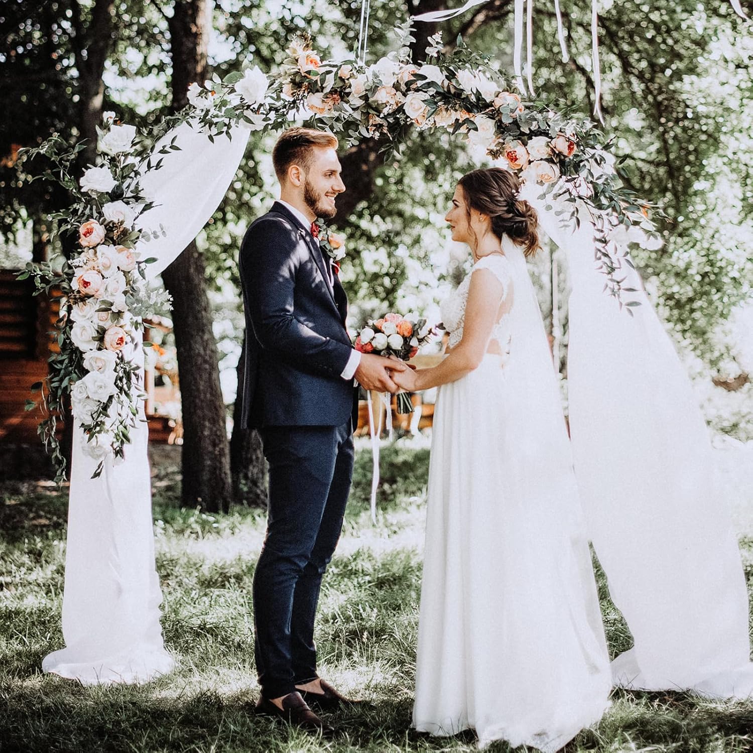 - Decorate with vibrant flowers, tulle, balloons, foliage, lights or anything else to create a beautiful arch backdrop stand