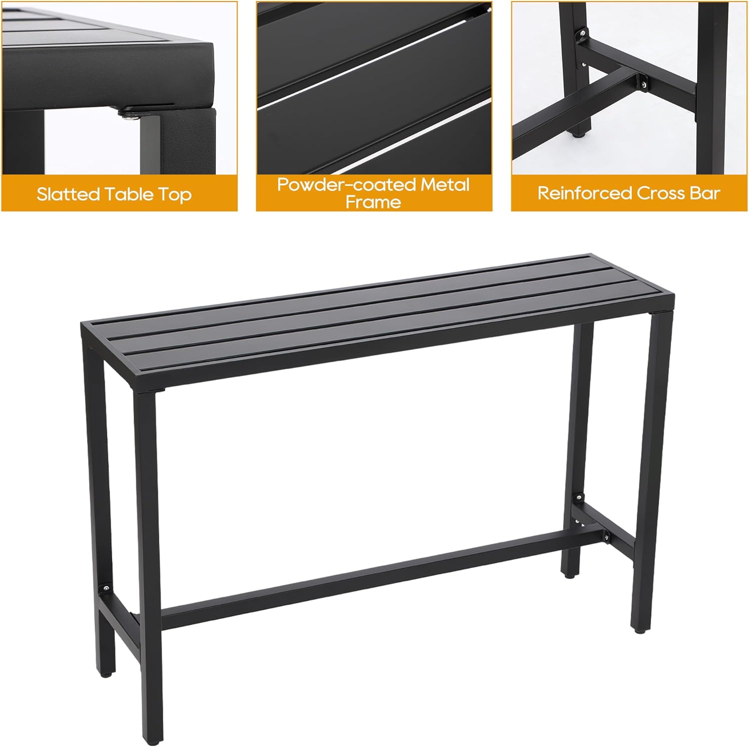- Built to Last: Our patio pub set is made of reinforced metal frame, which is sturdy and durable for long time use. Besides, the powder coating makes the high dining bistro set weather-resistant, waterproof, and fade resistant, which is a great choice for indoor and outdoor use
