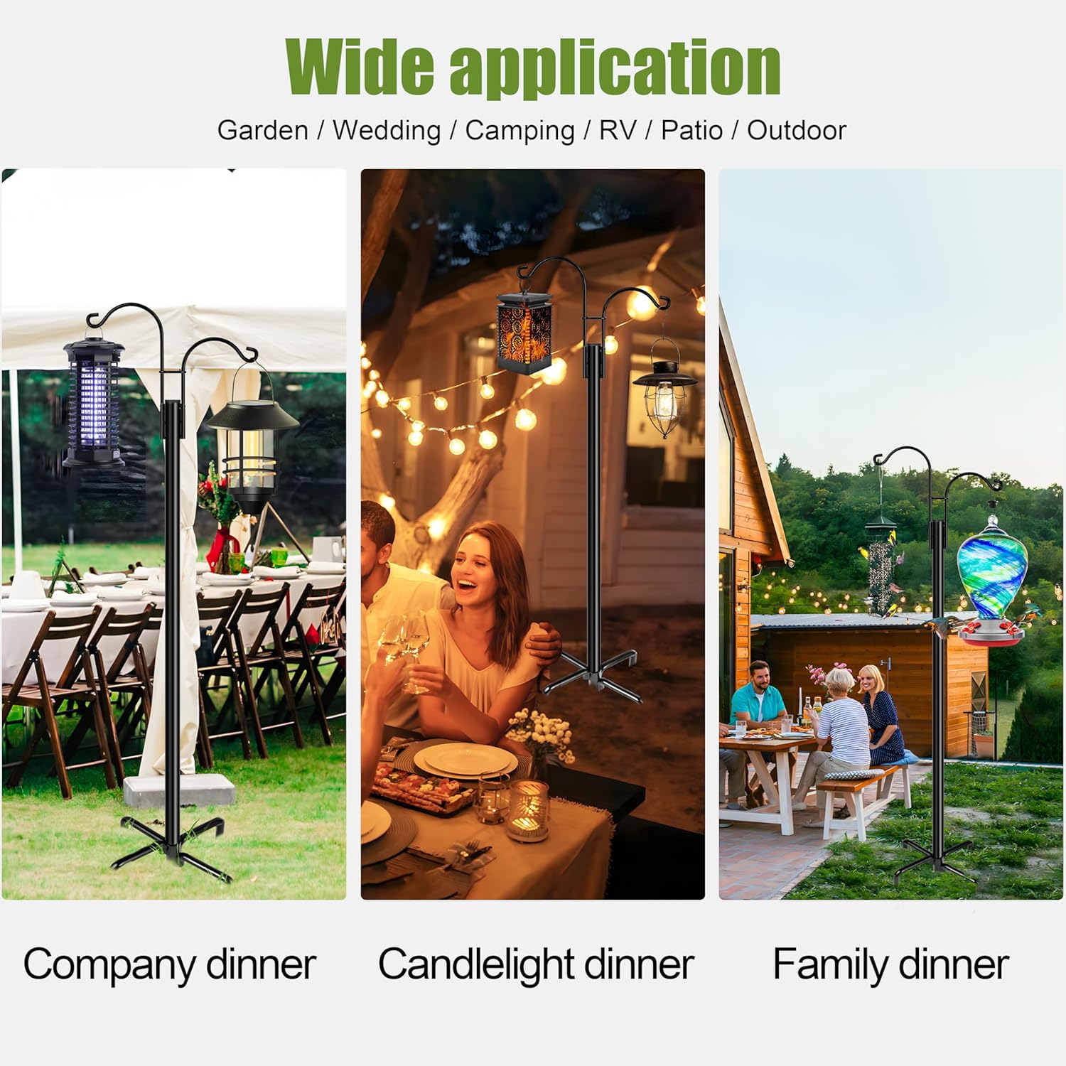 - Versatile And Multi Purpose: Thanks to the sturdy build coupled with the double arm design, our shepherds hook for outside provide the perfect fit for hanging solar lanterns, flower baskets, plant pots, hummingbird feeders, wind chimes, and more to complement any outdoor space