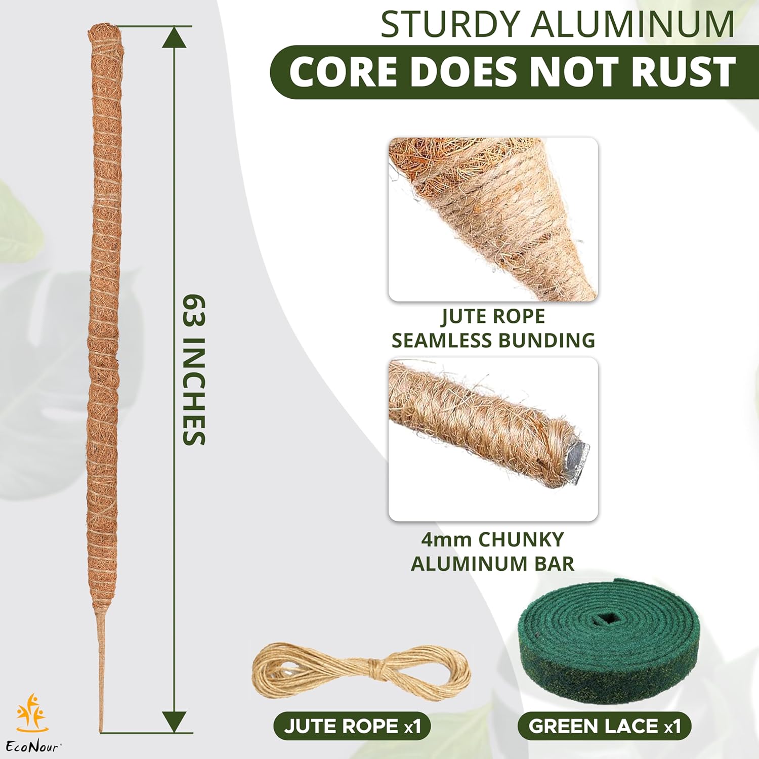EcoNour Tall Moss Pole for Plants (1-Pack) 63-Inch | Large Monstera Plant Support for Climbing and Growth | Elevate Your Indoor Garden | Tall Plant Support for Indoor Potted Plants to Grow Upwards
