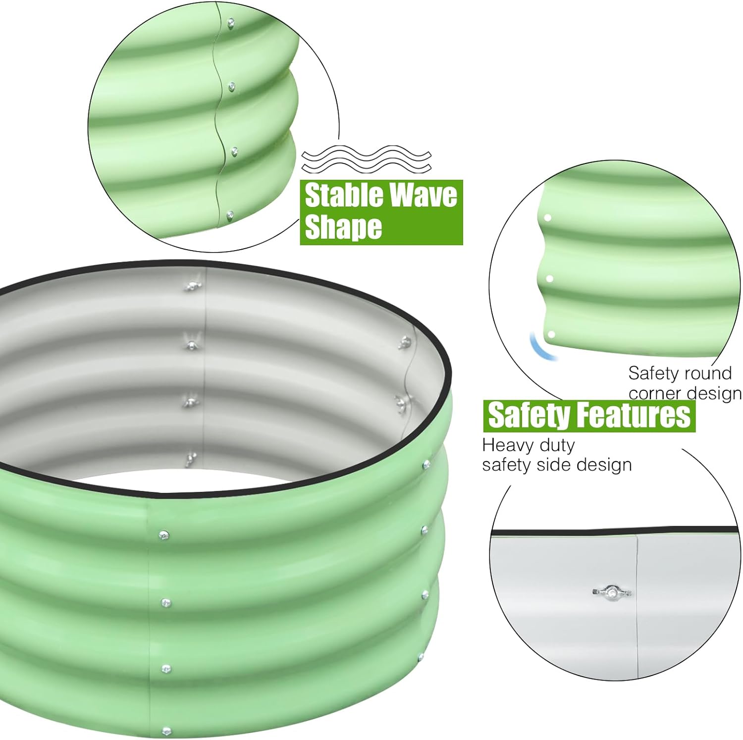 SnugNiture 2x2x1ft Round Galvanized Raised Garden Bed Kit Outdoor, Metal Planter Box for Planting Plants Vegetables, Green