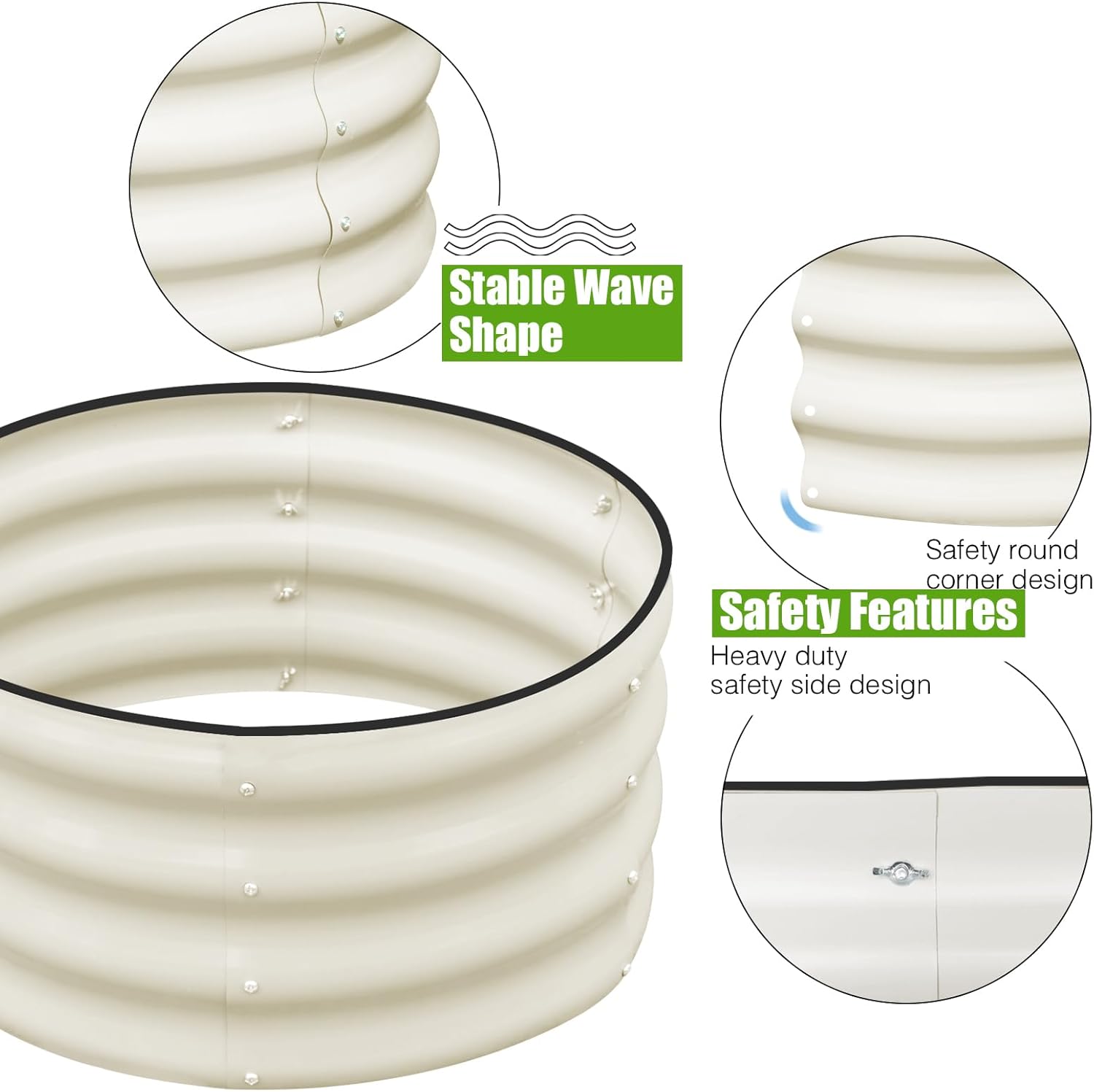 - DURABLE MATERAL: Made of thick galvanized steel plate, wave structure and round shape, rust-proof and durable, can stay in contact with the soil for a long time and resist corrosion.