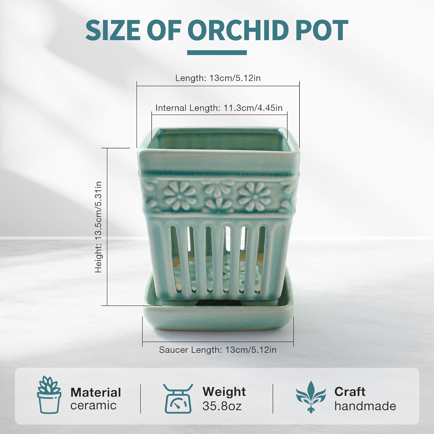 - 【Handcrafted Orchid Pot】Durable and handcrafted porcelain pot, measuring L: 5.1" x W: 5.1" x H: 5.5".