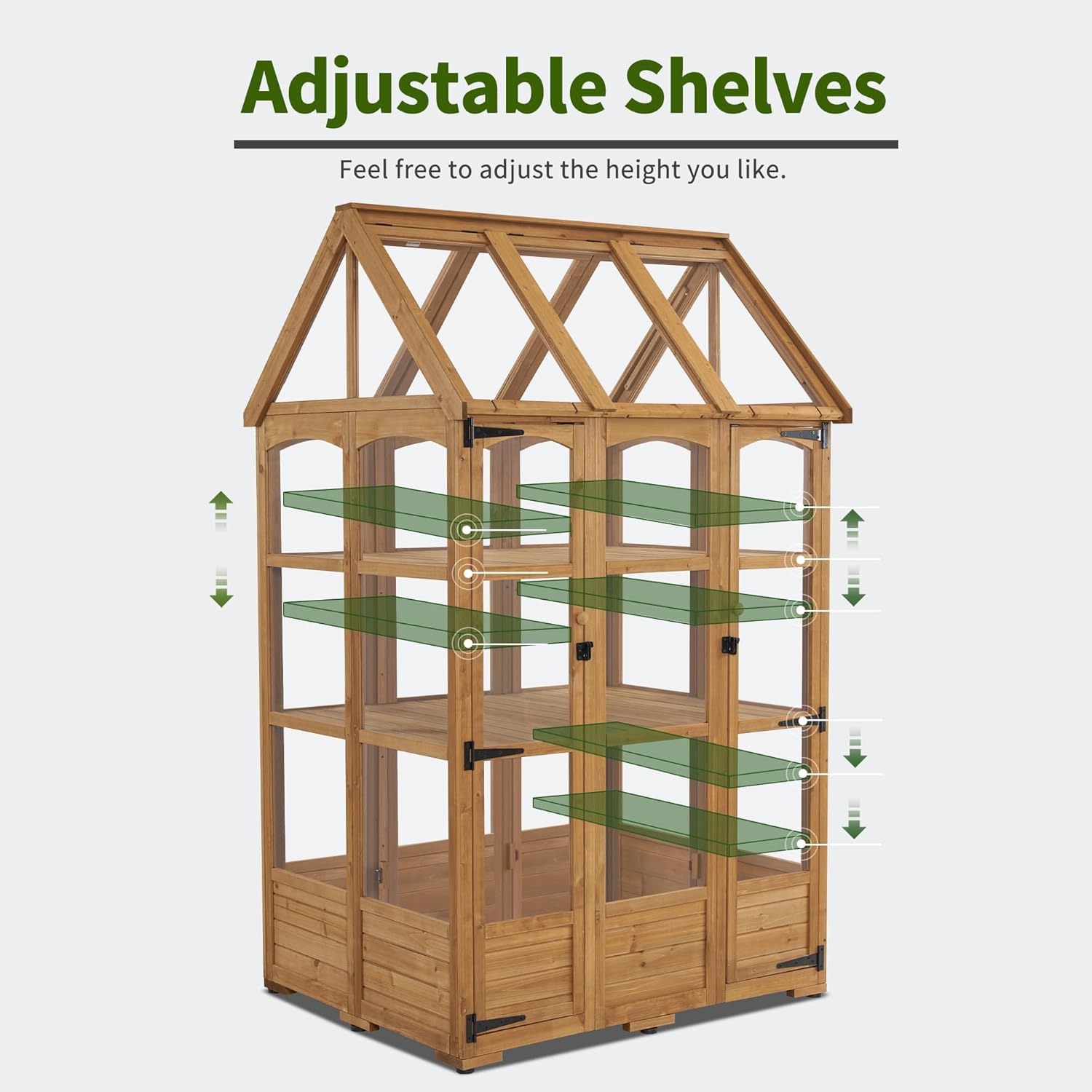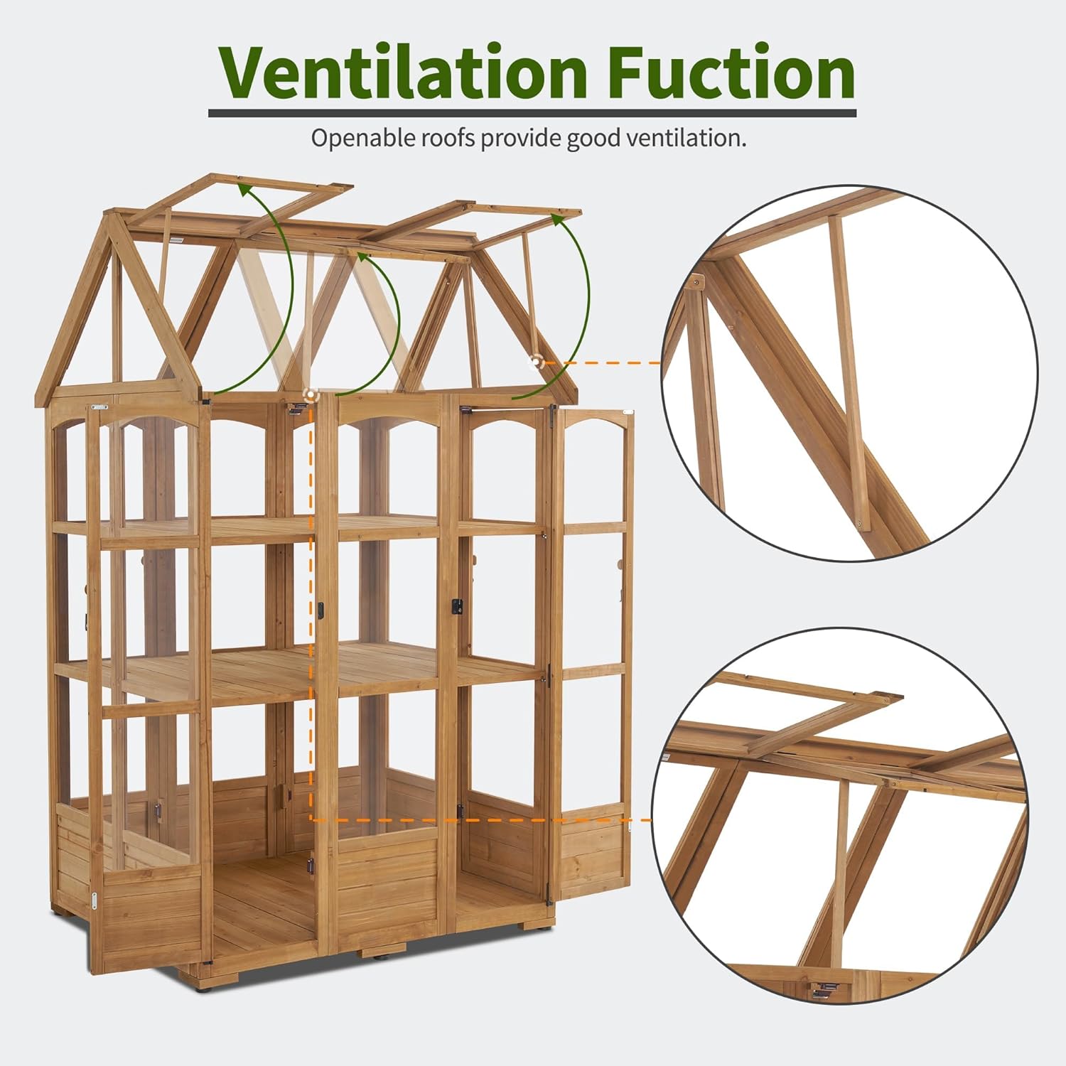 MCombo Wooden Greenhouse, Outdoor Greenhouse with Adjustable Roof Vent and 6 Lockable Door for Backyard/Outdoor Use, (48 x 38.8 x 83.9 Inches) 0851 (Natural)