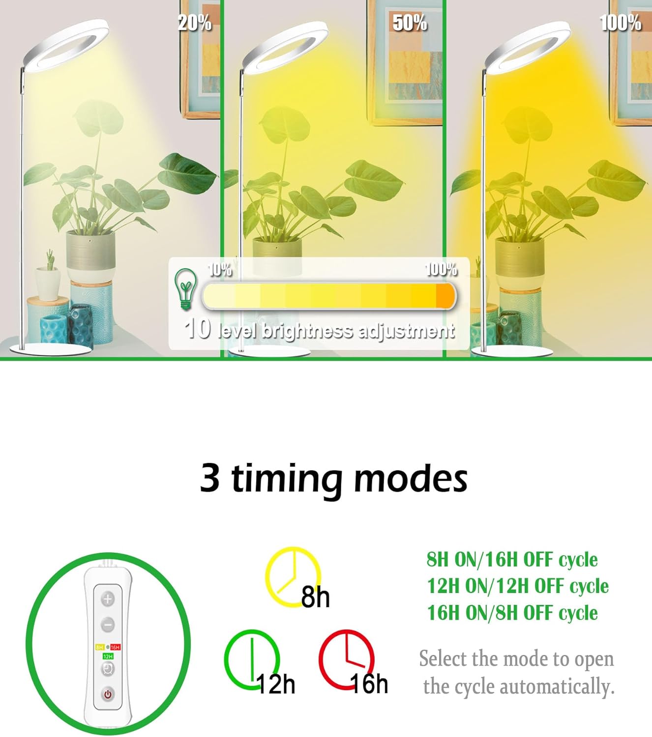 - Automatic Timer,On/Off Switch: The lamp operates from a built-in timer with 3 modes cycle timing function which stay on for 8/12/16 hour and off for 16/12/8 hours. The timer sets itself when one plugs-in,full control when the light turns on and off, simply by on/off switch as you needed,no need to unplug/re-plug.