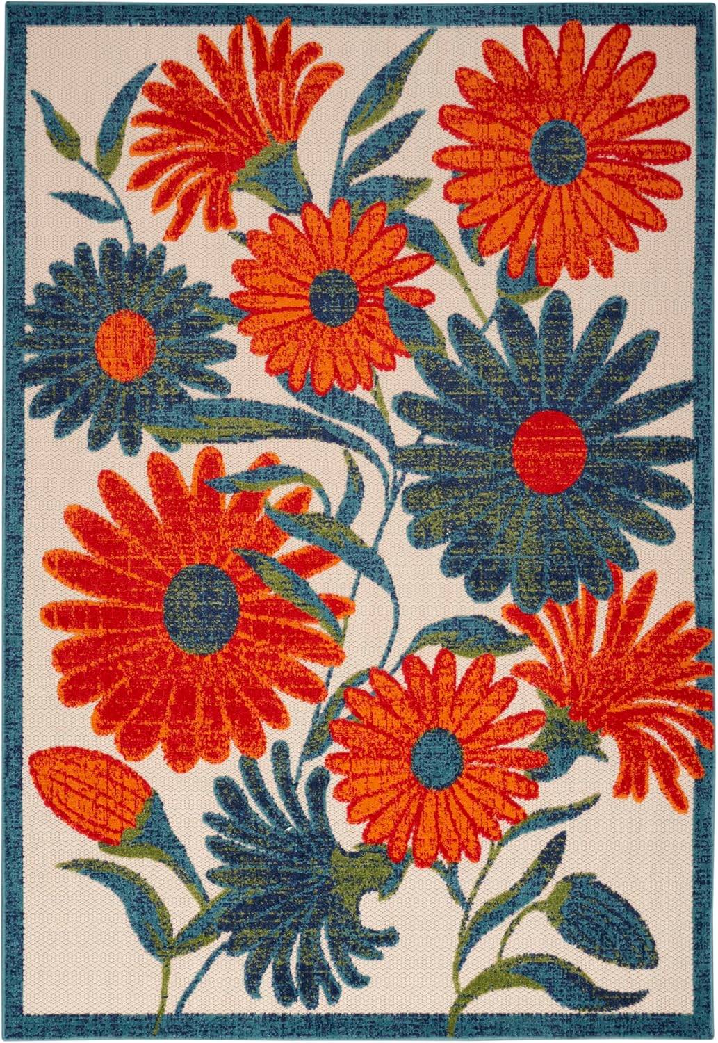 - EYE-CATCHING PATTERN: This floral outdoor rug is flatwoven with a subtly raised cut pile for a distinctive look and soft texture.