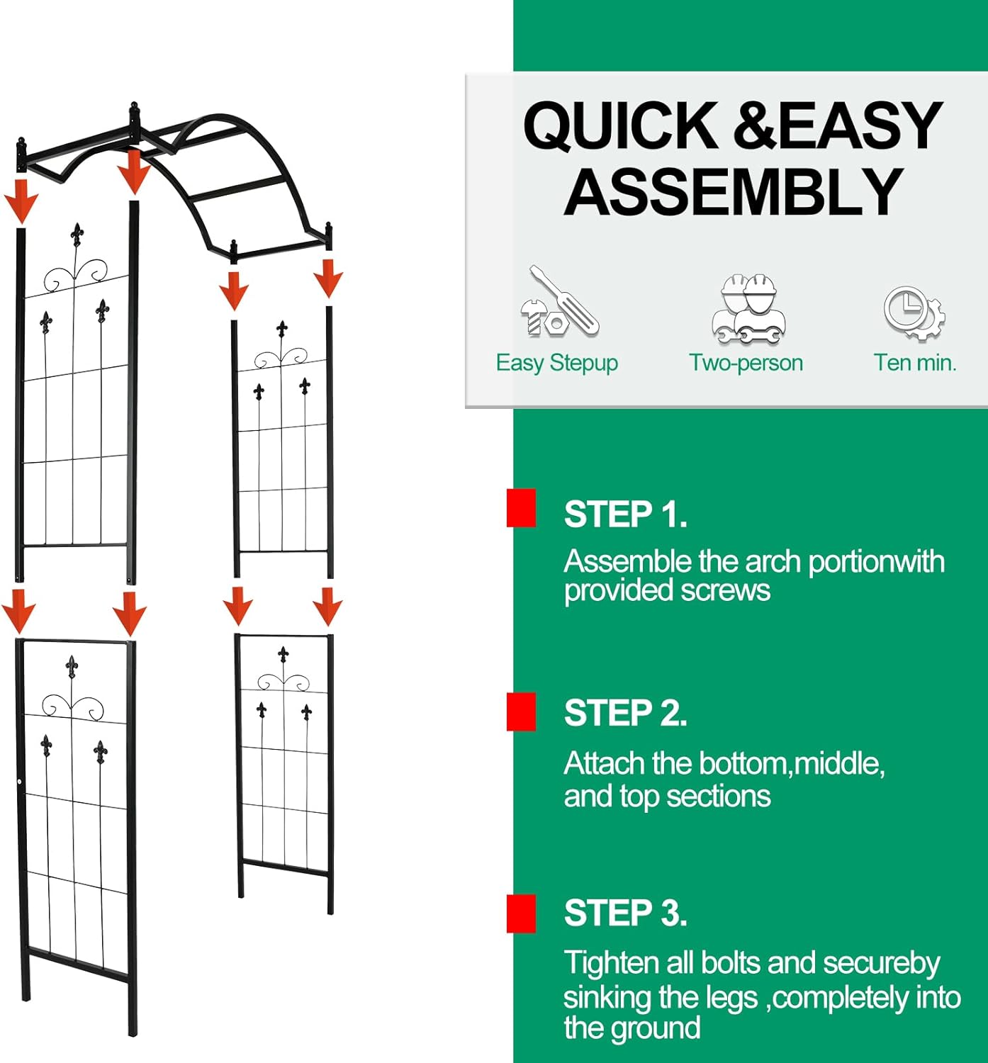 - Assembly Dimensions: You can easily assemble a wide arch( : 44.3"(L) x 17.8"(W) x 92"(H)) . It is suitable for a variety of spaces,with its dome design and classic yet modern aesthetic, this steel garden arch will surely turn heads and draw attention to any outdoor space.