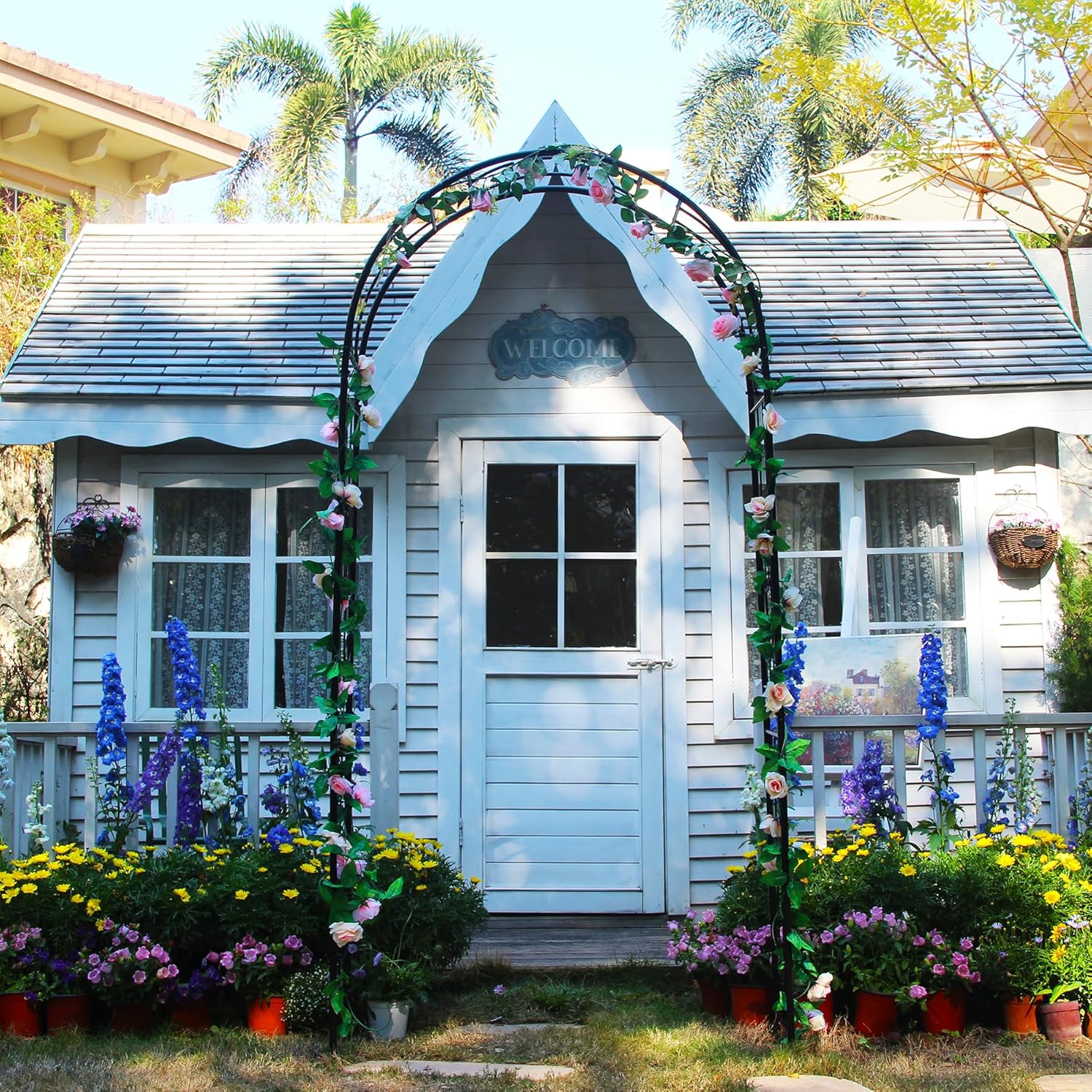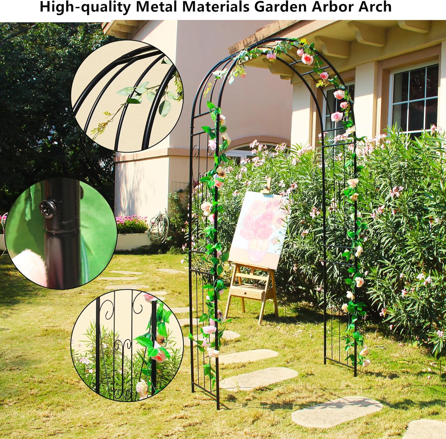 - Elegance Meets Practicality:Adorn this steel arch with climbing plants or hanging ornaments effortlessly. The thoughtful design includes rails for easy decoration, adding an extra touch of elegance to your garden.
