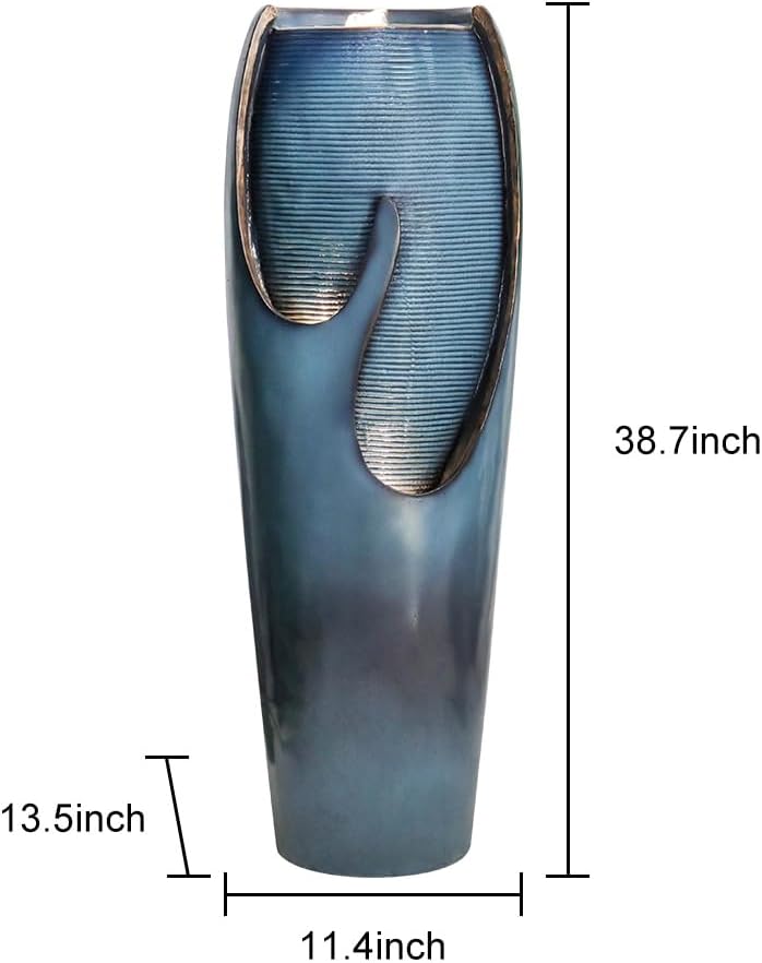- 【Antique Look&Prefect Size】Turquoise cracked jar design adds a vintage yet modern and sophisticated look that complements various indoor outdoor paces. Measures the outdoor water feature with lights with ideal size, 11.4x13.5x38.7inches(L x W x H), to fit almost any indoor outdoor areas. The indoor waterfall fountains outdoor can serve as a captivating and elegant addition to your indoor or outdoor decor, adding both visual appeal and a soothing ambiance.
