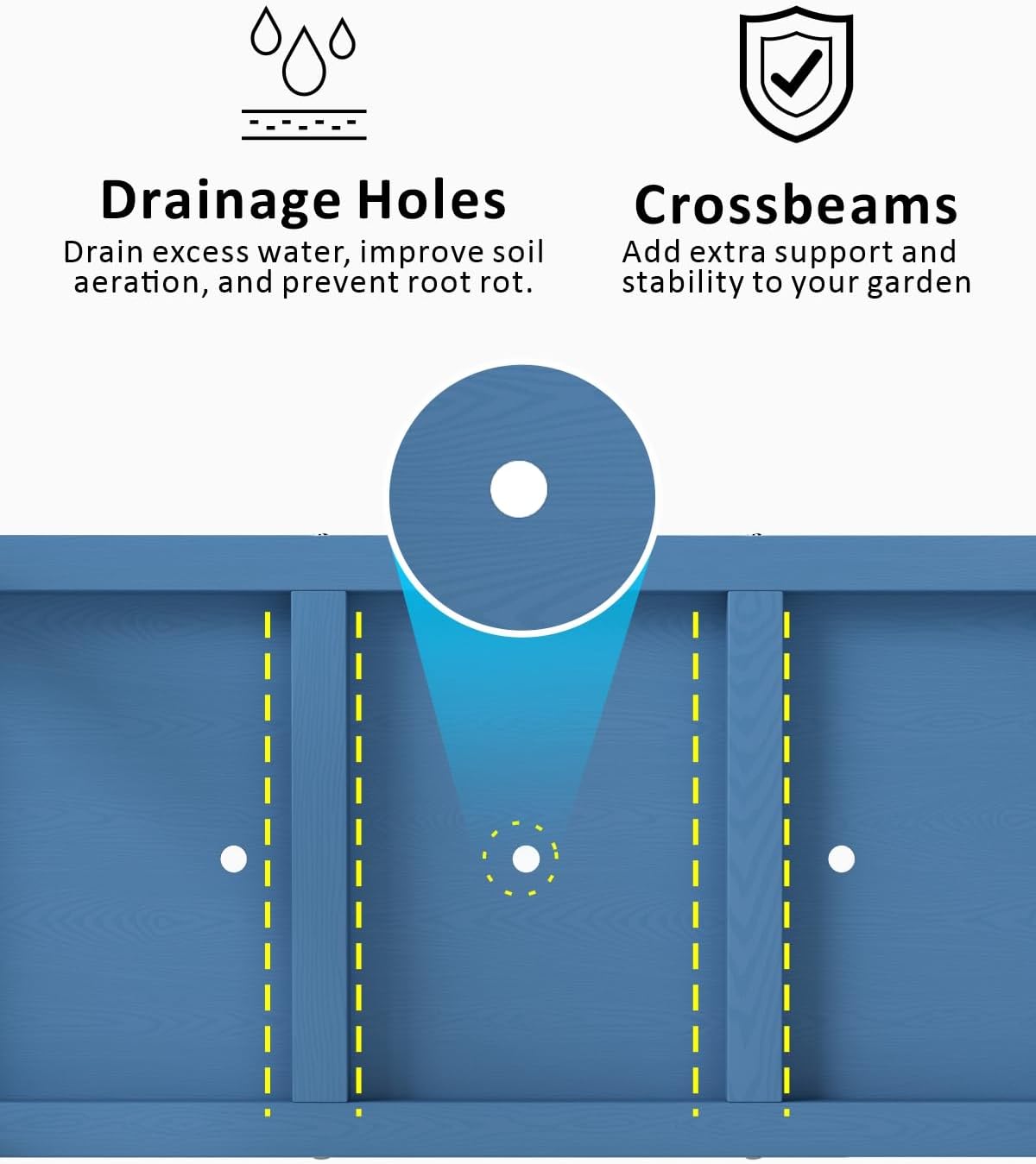 - Efficient Drainage System: Pre-drilled drainage holes prevent waterlogging, keep soil fresh, and ensure roots receive ample oxygen to avoid rot. Your plants will thrive effortlessly year-round, creating a vibrant garden