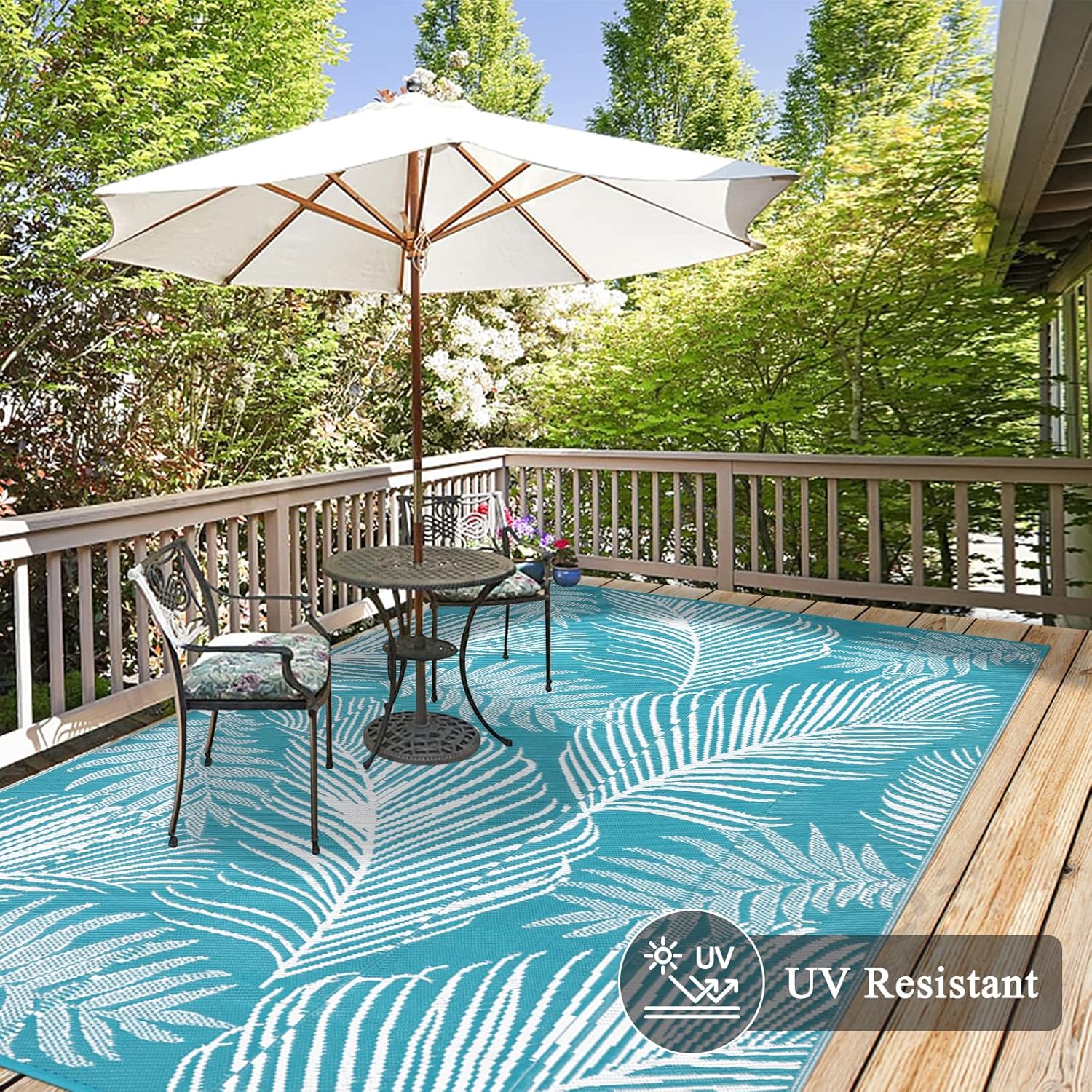 - Premium Quality: This outdoor patio rug is made of upgraded recyclable polypropylene material, which makes this outdoor carpet more durable, waterproof and no fading. UV coated for long lasting colors and heat treated edge to avoid fraying