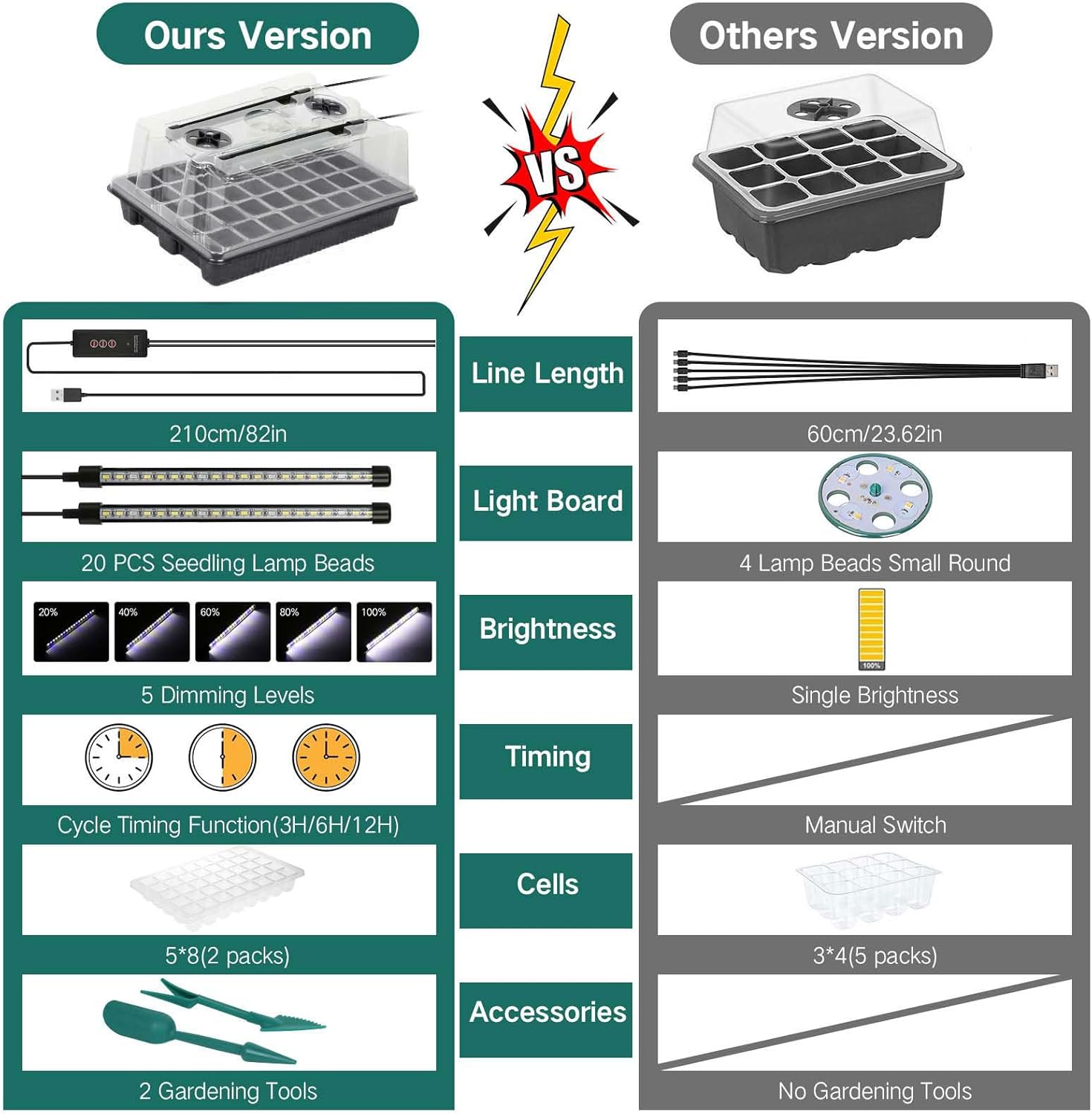 - 【Upgraded Lighting System】Seed starter kits are equipped with grow light, which is brightness-adjustable and timing-controlled to give a premium growing environment. Simulating the full spectrum of sunlight to promote photosynthesis and provide the best environment for seed germination.
