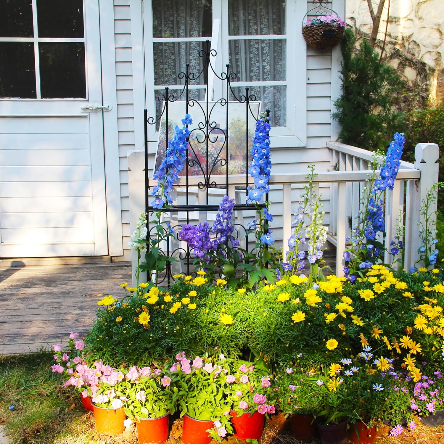 - Powder-coated Finish: Weather-resistant and able to stand independently or be secured to a wall, this garden trellis adds a touch of elegance to your garden, even without plant adornment. Its black powder-coating, coupled with a faux hand-rubbed finish, provides an appealing rustic look. Ideal for supporting flowering vines in summer and adding architectural interest to your lawn decor in fall or winter.