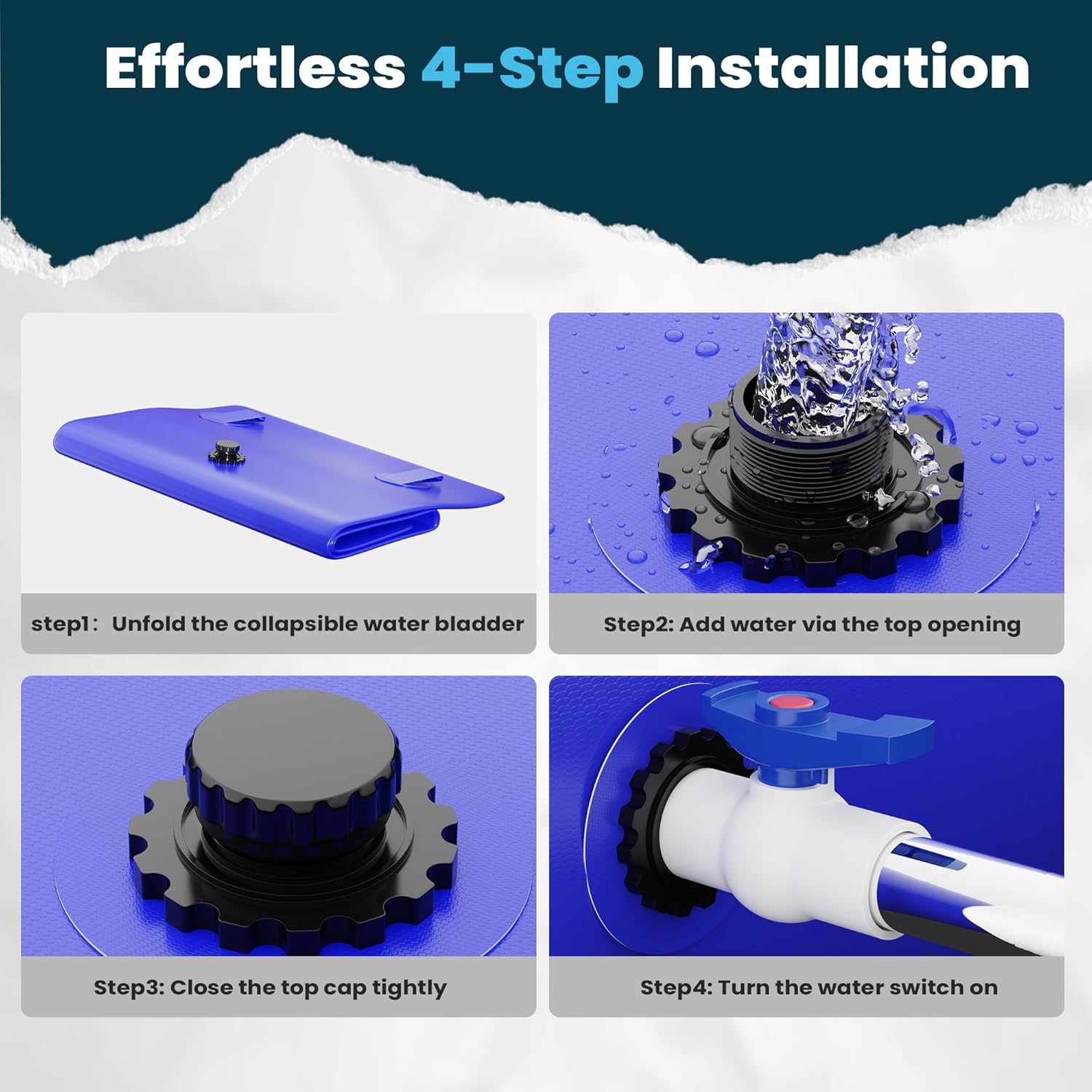 - 💧【Tough and Durable】The bladder tank has unique properties such as rainproof, fireproof, wear-resistant, corrosion-resistant, anti-aging, anti-stretching, and so on. The service life can be up to about 8-10 years, environmental adaptation temperature: -50~+61℃. Summer sunscreen, winter high toughness, can be used for a long time, portable and safe.