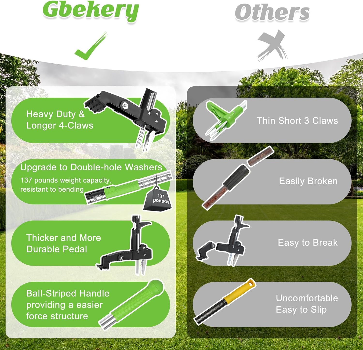 - Peace of Mind:The Gbekery Weed Puller Tool is a must-have for any gardener or landscaper looking to simplify their weeding process. We also provide 24 hours service, and if the product has any problem, please contact us without hesitation!