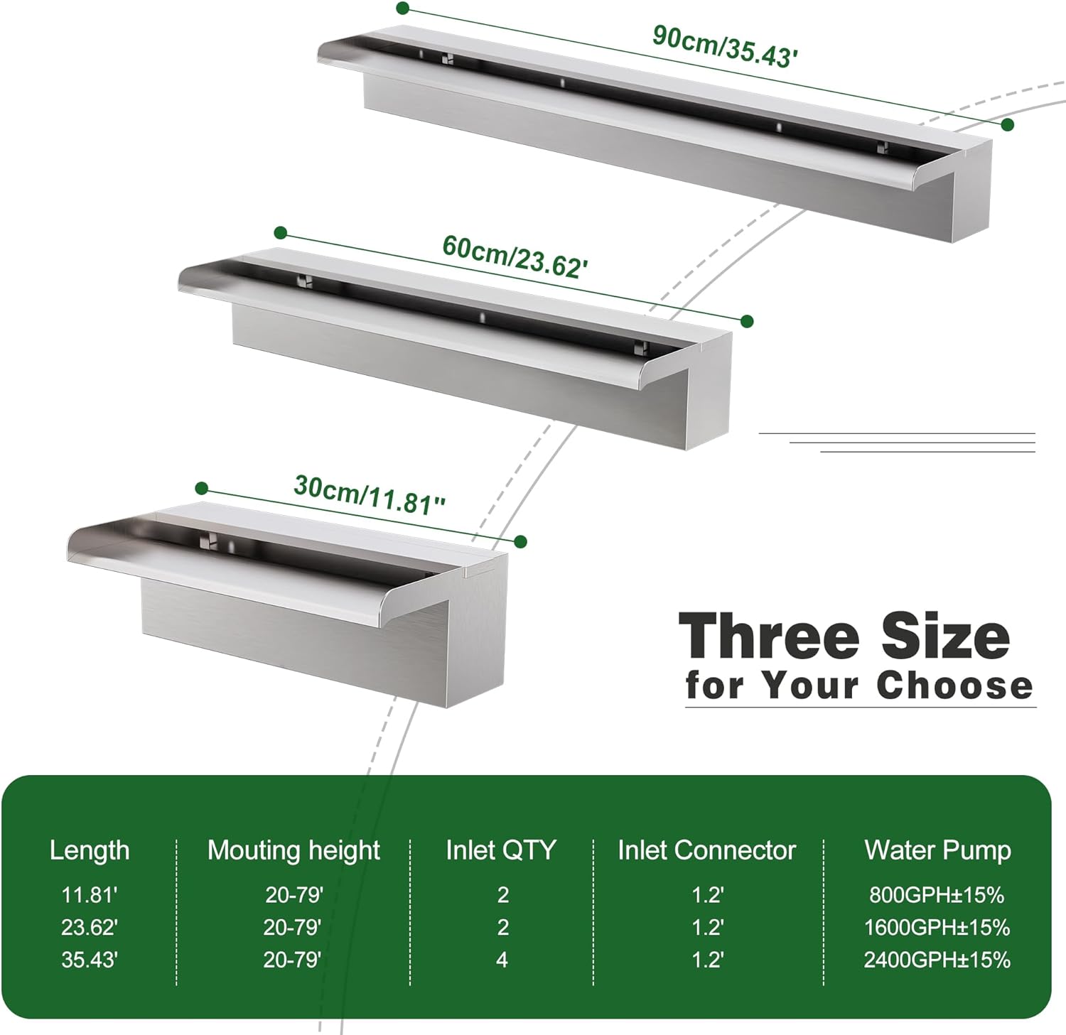 - ăOne Year Replacement Committmentă- This elegant cascading water feature requires a separately obtained pump for operation. We stand behind our products, and our dedicated support team is available to address inquiries regarding this product, offering prompt responses within a day. Please browse our other products for pool fountain accessories in our store. Waterfall only. LED light strips additional purchase.