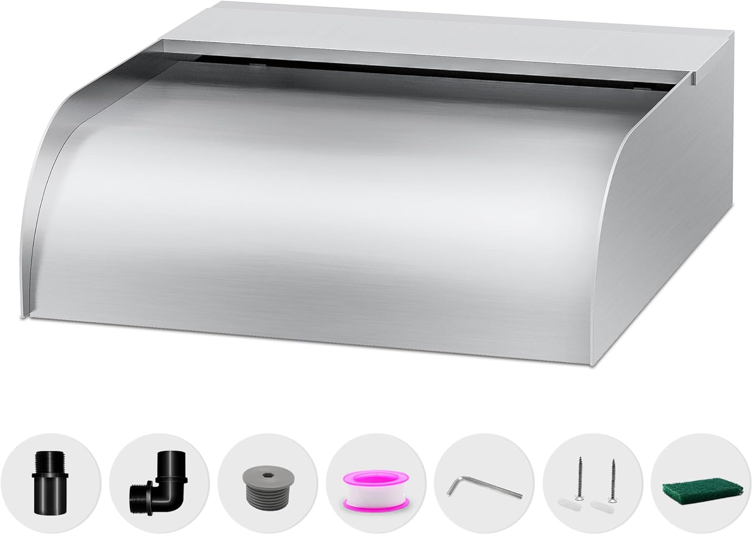 - ăAnti-Rust Spillway Waterfallă- Our welded in one body one-piece 304 stainless steel construction of this spillway waterfall provides long-lasting strength, rust resistance, and leakproof performance. The open lip design creates an elegant freefalling waterfall that adds decorative flair to ponds and pools. The soothing sound of the cascading water promotes relaxation and tranquility. LED light strips not included, but available separately.