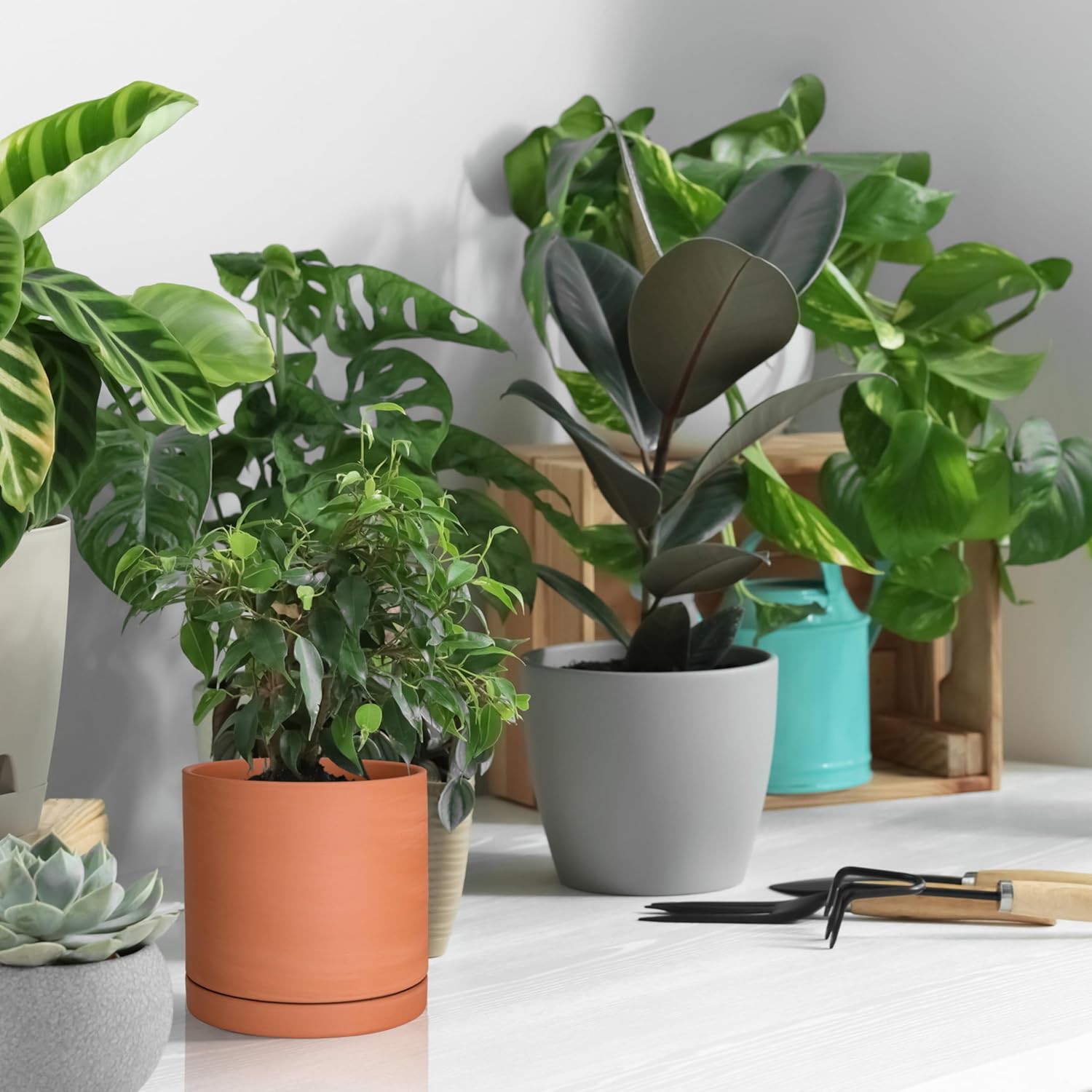 D'vine Dev Small Plus 5 Inch Terracotta Plant Pot with Drainage Hole and Saucer, Round Cylinder Planter Pot for Indoor Plants, 40-X-A-2