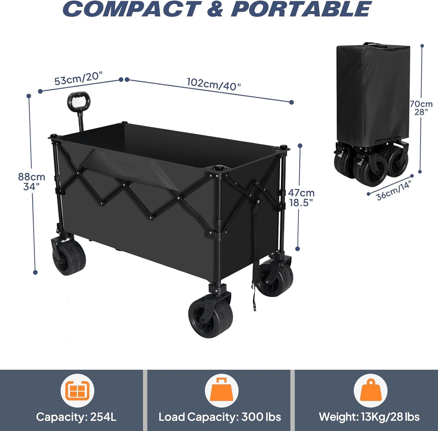 Chihee Garden Cart Collapsible Outdoor Utility Wagon Cart,Folding Beach Cart Oversized Capacity 254L,Heavy Duty Portable Wagon All Terrain Wheels Oversized Side Pocket 2 Drink Holders for Camping