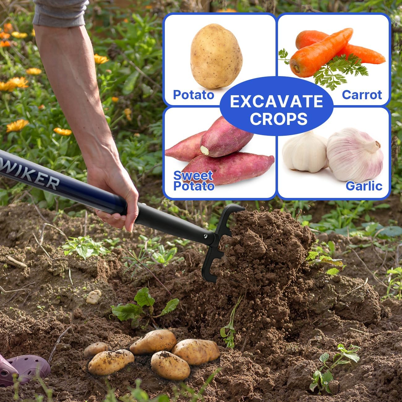 - The garden fork has an overall length of 43 inches,4.5 pounds,and can be used by both elderly and women.It was used to turn composite tube,digging carrots,potatos,garlic.Easy to prepare beds by turning over the oil,Best tool for picking up much.