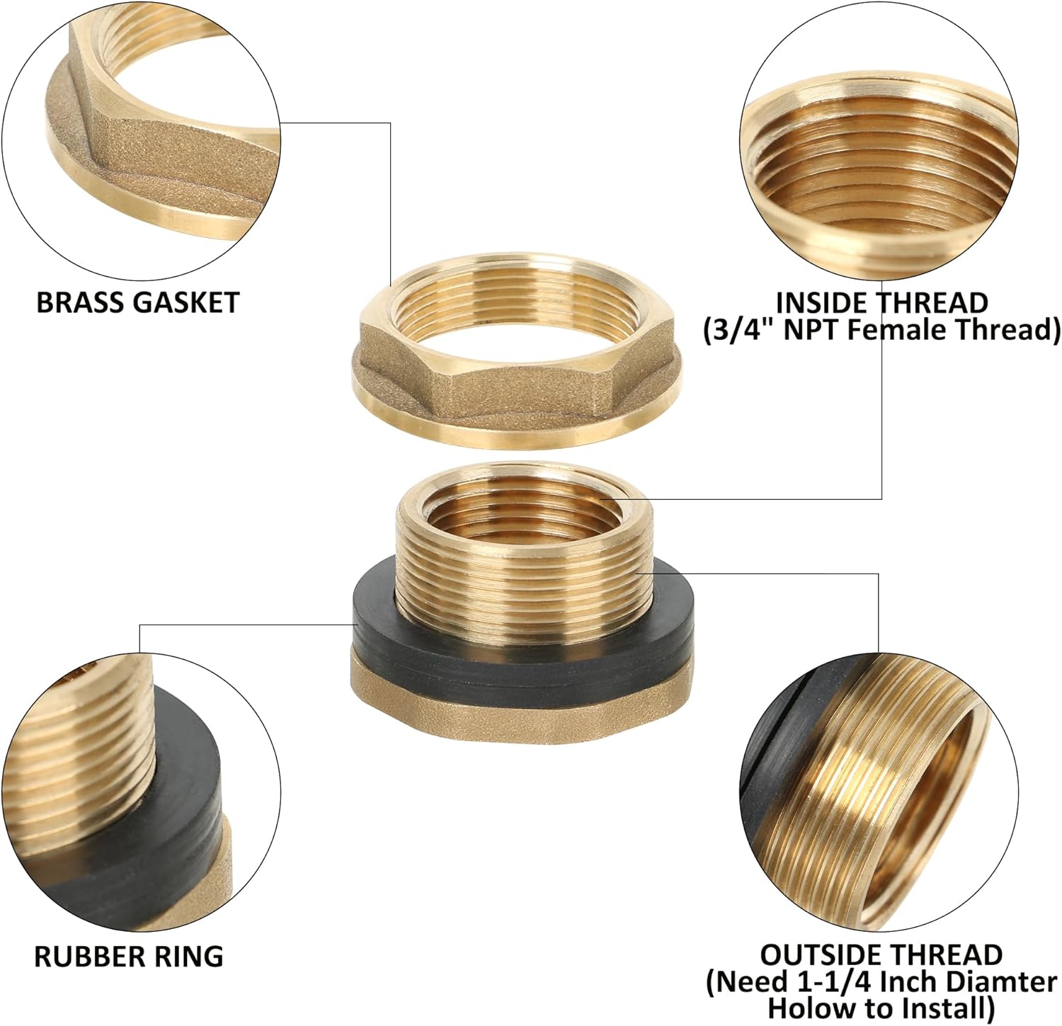 - PRECISE BRASS THREAD ALLOWS FOR A SECURE AND LEAKFREE CONNECTION - The inlet end of this rain barrel spigot features with 3/4β Male NPT Thread, while the outlet end is 3/4" Male GHT Thread. It allows you to use it with most of the garden hoses or soaker hoses, ensuring firm mounting at the same time.