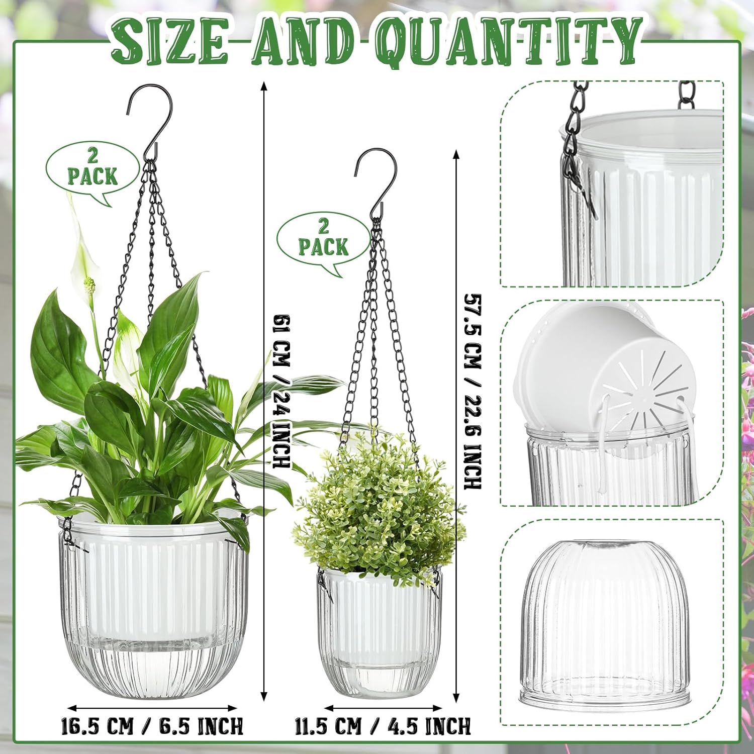 Maxcheck 4 Pcs Self Watering Hanging Planters Indoor Gift 6.5'' 4.5'' Hanging Flower Pots Baskets Outdoor Self Watering Plant with 3hooks Drainage Holes for Home(Clear)