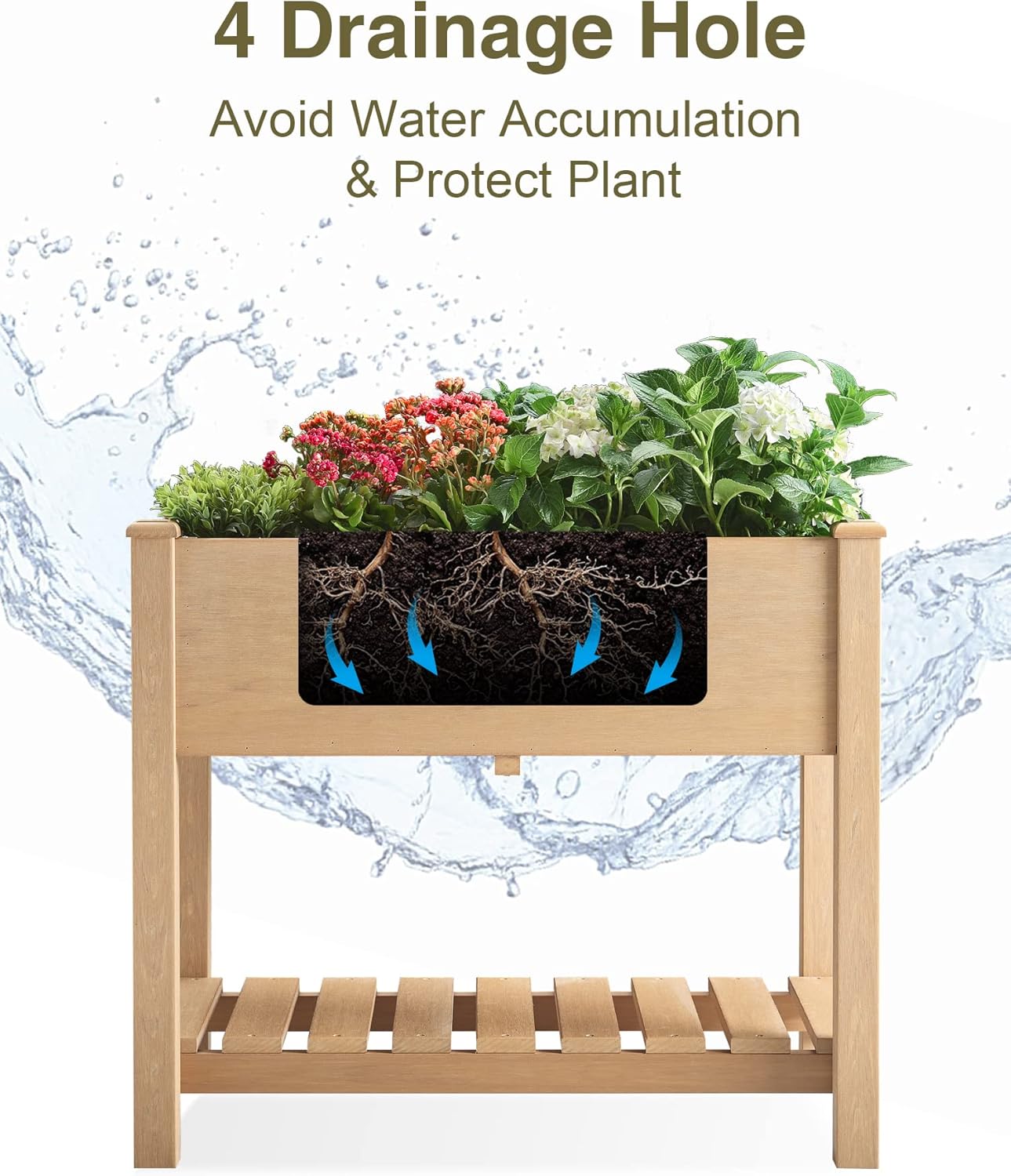 - Multi-Functional Planter Box with Shelf - Our raised planter box features an additional bottom shelf for storing herb gardens and organizing your gardening tools within reach. Everything you need is right at your fingertips.