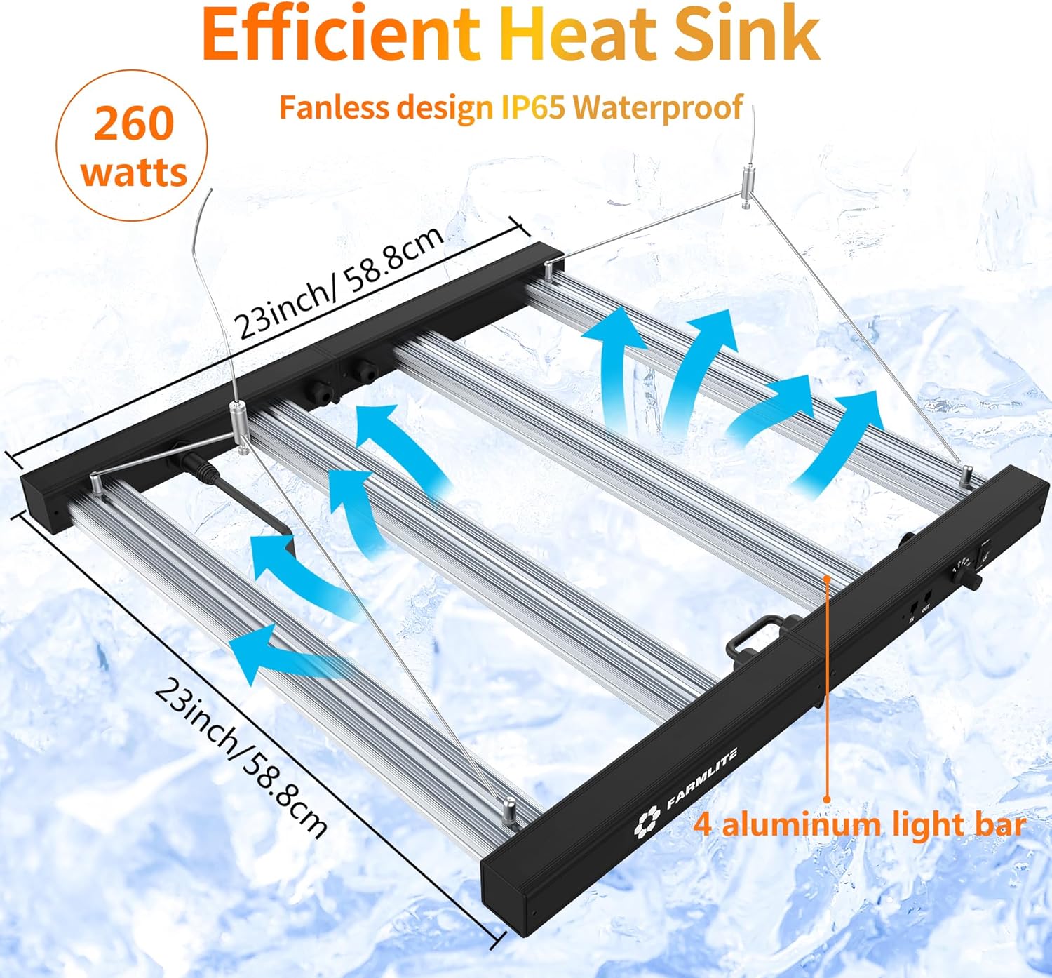 - 【Efficient Heat Dissipation and No Noise】Our grow lights are made of 4 lightweight aluminum bars, which has efficient heat dissipation and cooling functions.it's powerful heat dissipation ability that no need to buy more cooling devices.This led plant light has no fan, there will be no noise.it is very light weight and IP67 waterproof,so it's easy to carry and install.