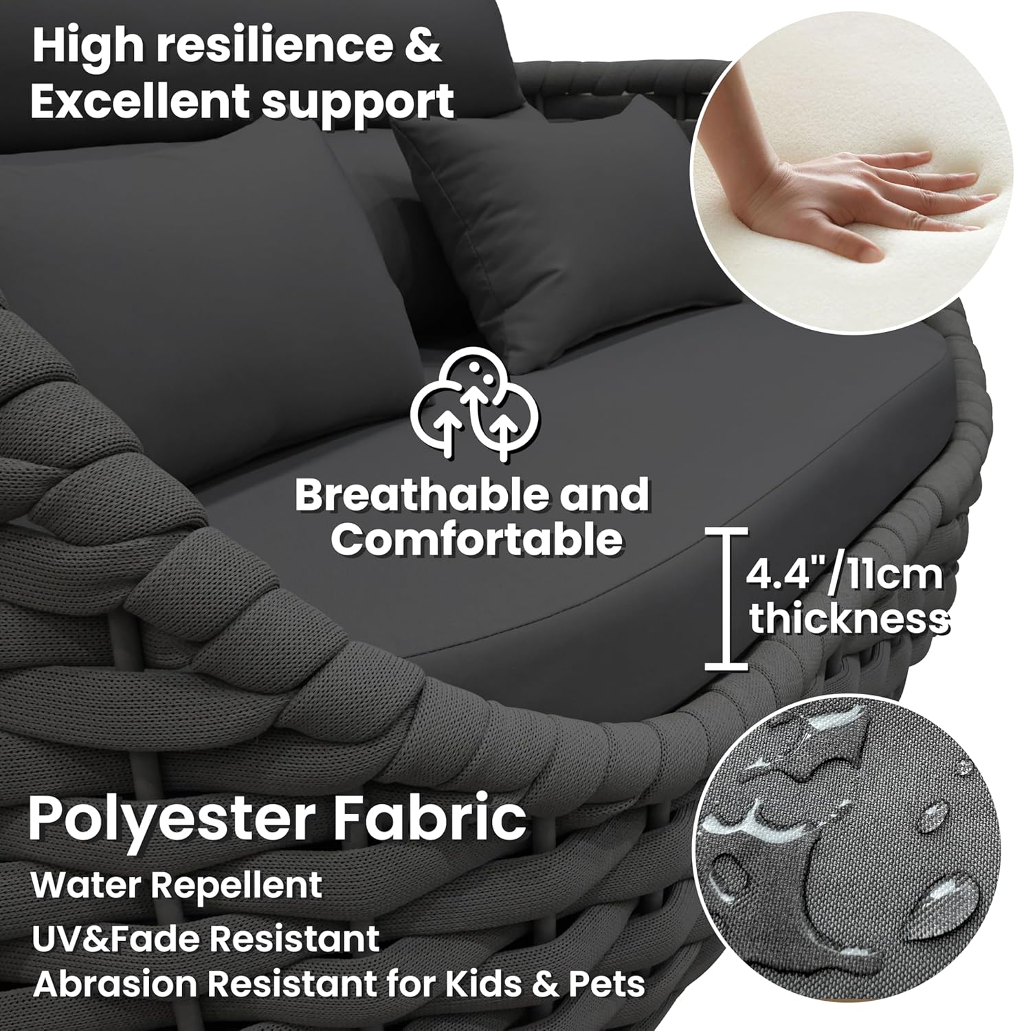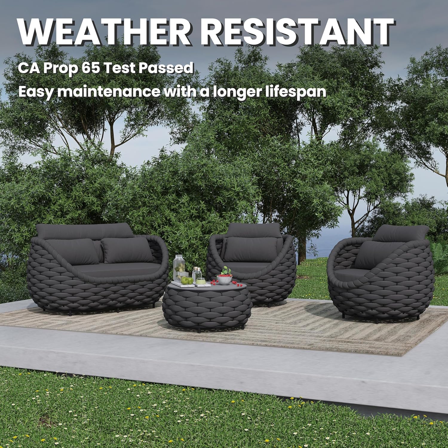 - Inspired by bird's nest cup shape, the Erotr patio rope sofa set collections combines comfort, elegance, and durability, curved armrest, backrest and deep cushioning offer an enveloping ultimate relaxation