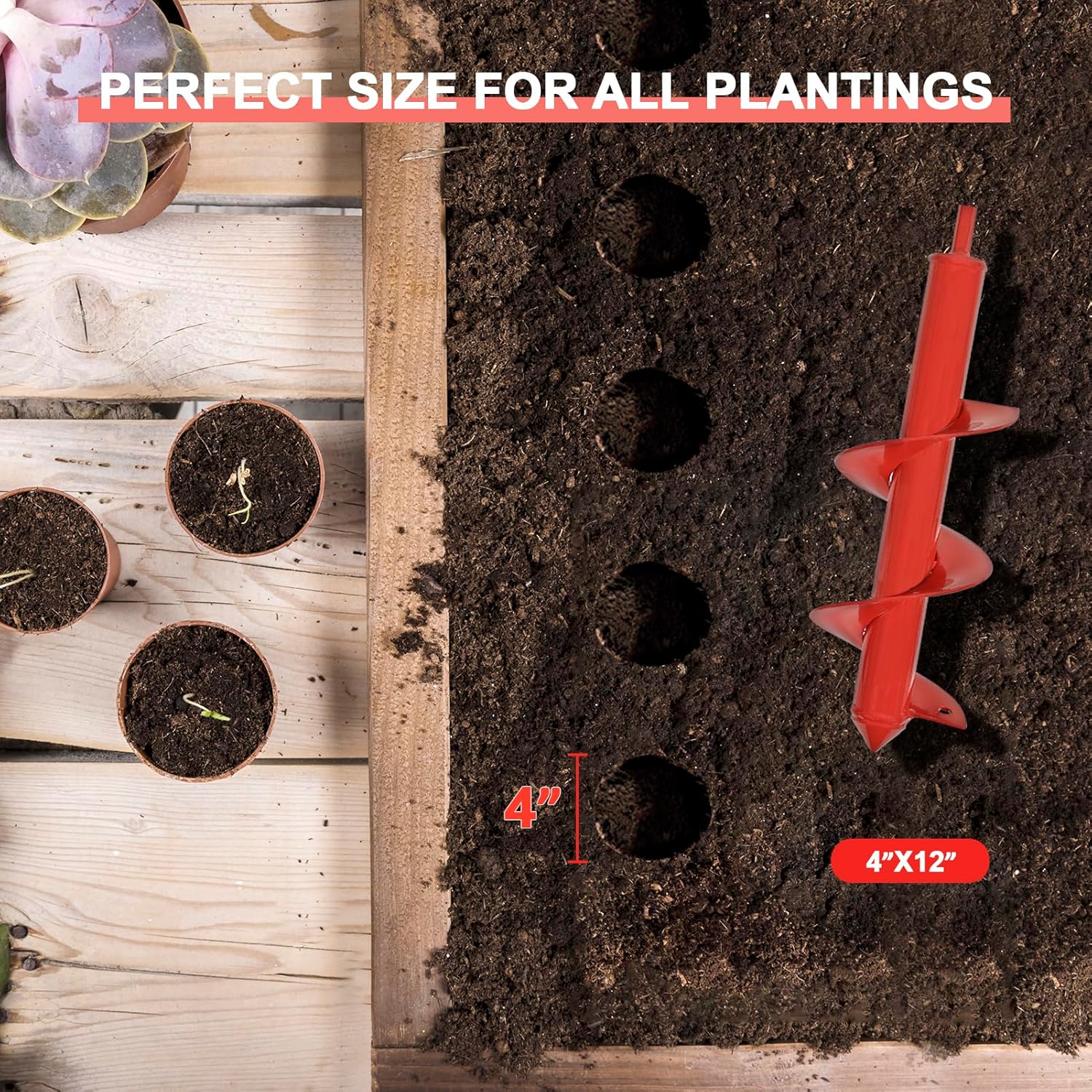 - Use It Anywhere: Although this auger spiral drill bit is perfect for planting bulbs, it’s not just limited to garden work. You can easily dig holes for post holes, fences,trees, and even bench umbrellas.