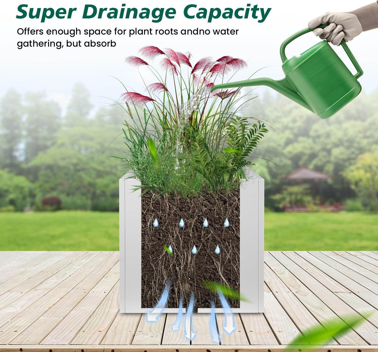 - Indoor Outdoor Planters White Square Planter beautiful shape, with drainage holes at the bottom to allow excess water to drain out, suitable for plant growth.