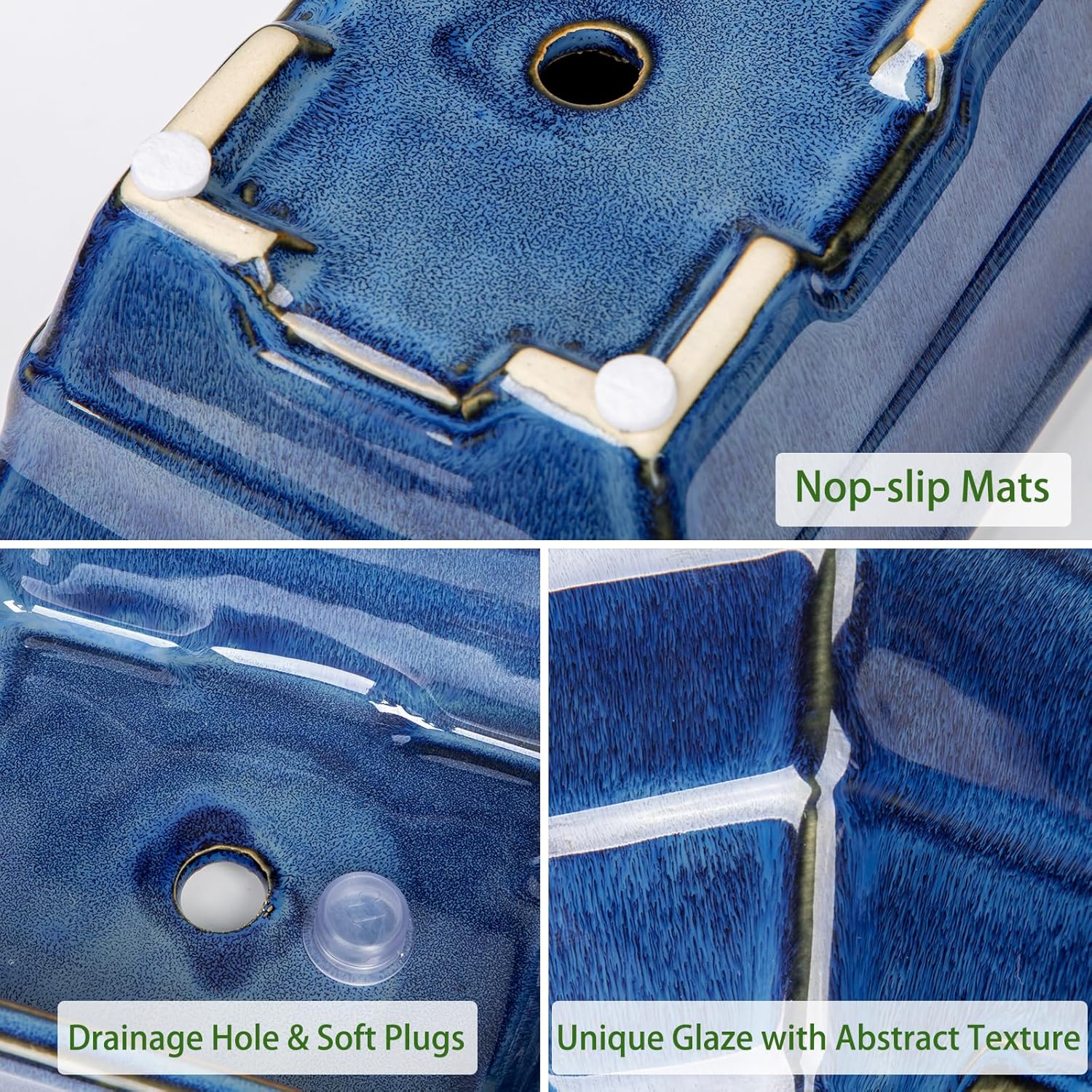 - 【Breathable System】Glazed on the inside holds a lot of water, while a drainage hole with a silicon plug at the base ensures preventing bottom water from corroding plant roots. Great to plant something with red leaves, flowers or berries that loves water, anything deciduous, evergreen tree or succulents which needs maintaining drainage