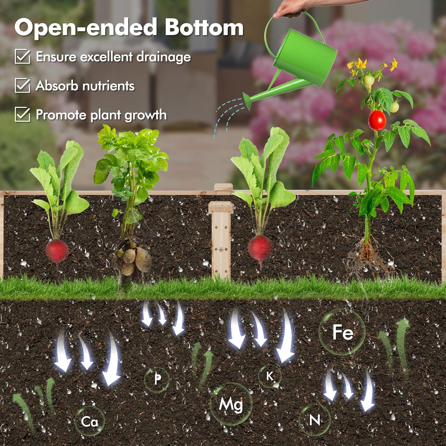 - 【Superior Drainage & Root Growth】 Equipped with an open-ended base, the garden planter offers outlets for excessive water to drain out, preventing water-logging and safeguarding the planter from swelling. In addition, humidity and nutrients are kept in balance to promote plants growth.