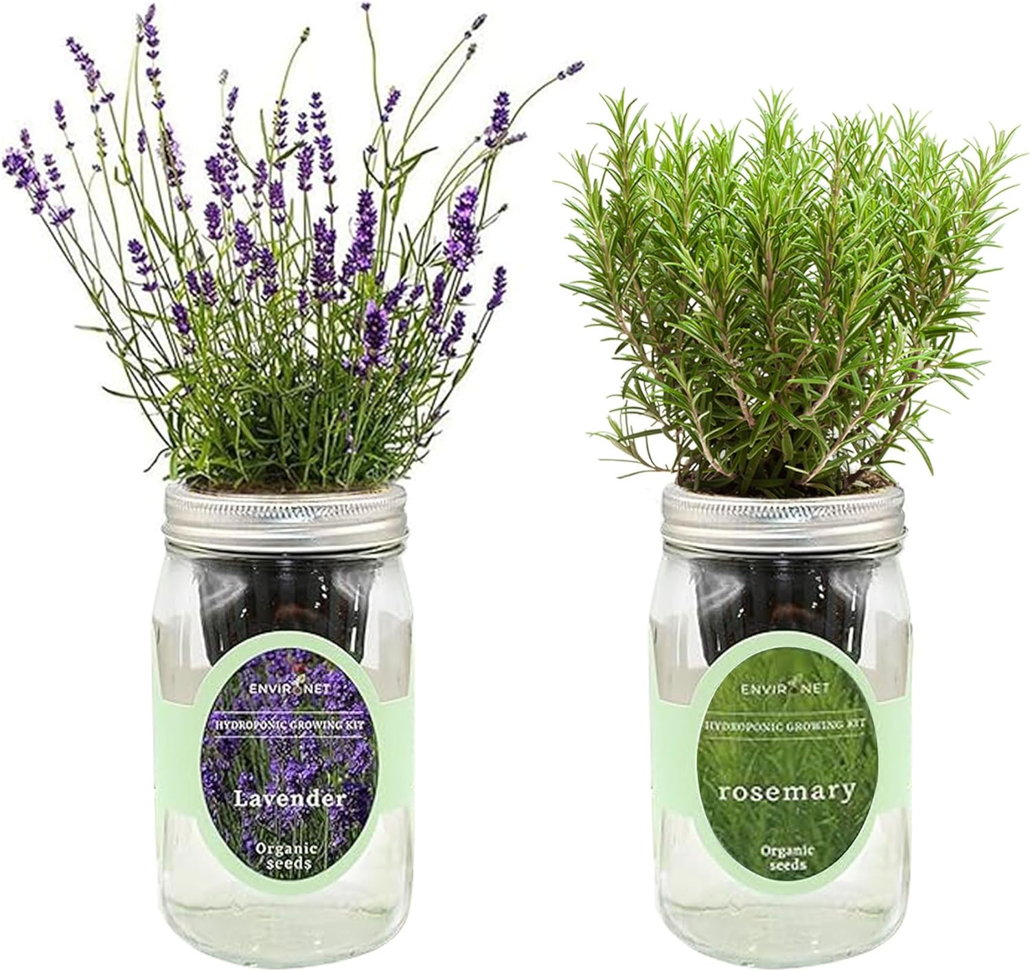 2-Pack Hydroponic Mason Jar Herb Garden Kit, Indoor Herb Garden Self-Watering Starter Kit (Lavender,Rosemary)